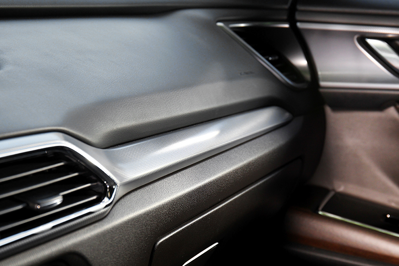 第三排使用時行李廂有230公升容積,倒放後則能擴增到810公升。 除了後座獨立座椅所提供的絕佳乘坐體驗,車艙格局設計更是精彩,大量軟質飾板與皮革鋪陳,營造出溫潤且富含豪華氣息,實木飾板的點綴則達到CX-9欲訴求的高級質感氛圍。配備方面亦提供無線充電、無線Apple CarPlay、MRCC全速域主動車距控制巡航、LAS車道偏移防止、SCBS進階前行煞車輔助等豐富便利與智慧輔助科技配備。中控螢幕雖仍為9吋規格,但直覺介面和實用功能及搭配旋鈕式控制鍵,在實際操作則有相當討喜的感受。
