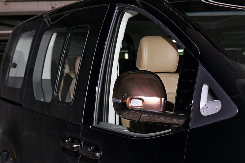七人座車型於水箱護罩、頭燈框、後視鏡、車門把手與輪圈配置玫瑰金點綴。