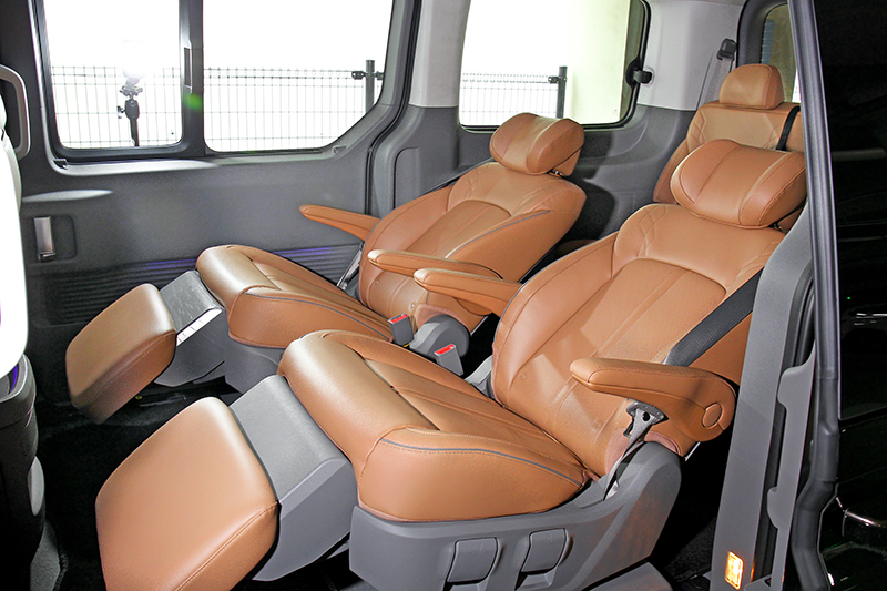 這還不是最精彩的部分,Staria CEO車型精華之處就是後座空間,七人座設定讓第二排得以採獨立座椅,不僅如此還是配置如商務艙般的零重力電動座椅,使其具備仰躺功能及腿靠,只要一鍵就能立即獲得相當舒適的姿勢,另外亦提供加熱/通風與前後左右移動調整等機能功能。擁有如此舒適的座椅當然還有寬敞的空間搭配,在多項優勢助益下讓每趟旅程都帶來絕佳的乘坐體驗。