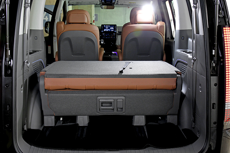 車尾雖無車頭流線,但光柱式尾燈也帶來科技視覺感受。 車艙雖沒有外觀星艦前衛的設計,但基於遊艇的思維也規劃出令人驚艷的格局,首先控台海灣式的造型提供開闊的視覺感受,電子線傳式排檔則進一步擴大前座乘坐空間,不僅如此Staria採用的低腰線設計,除可提升駕駛視野同時也放大了車室空間視覺感。