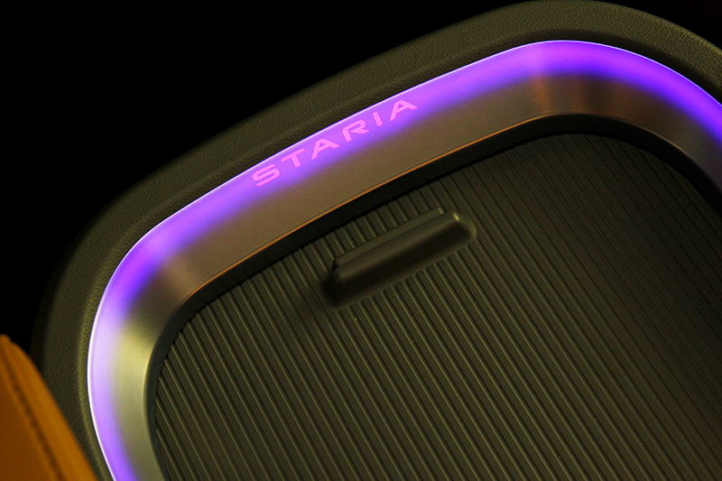 雖Staria與星艦沒有任何關連,但有此想法則來自於外型設計,整體造型輪廓在商旅設定下採用方正身形,但跳脫商旅框架流線的車頭造型,沒有過多繁瑣的線條在橫貫式LED日形燈與矩陣式頭燈點亮下,勾勒出如同星艦般科幻感受,而車尾造型雖方正,但透過與車頭相呼應的光柱式尾燈,也散發強烈的科技氣息。而試駕車型CEO七人座版亦於蜂巢式水箱護罩、廠徽、下護飾條、18吋輪圈、後視鏡、車門把手、銘牌等處採玫瑰金配色處理,搭配星際黑車色中有如在宇宙中散發星芒。