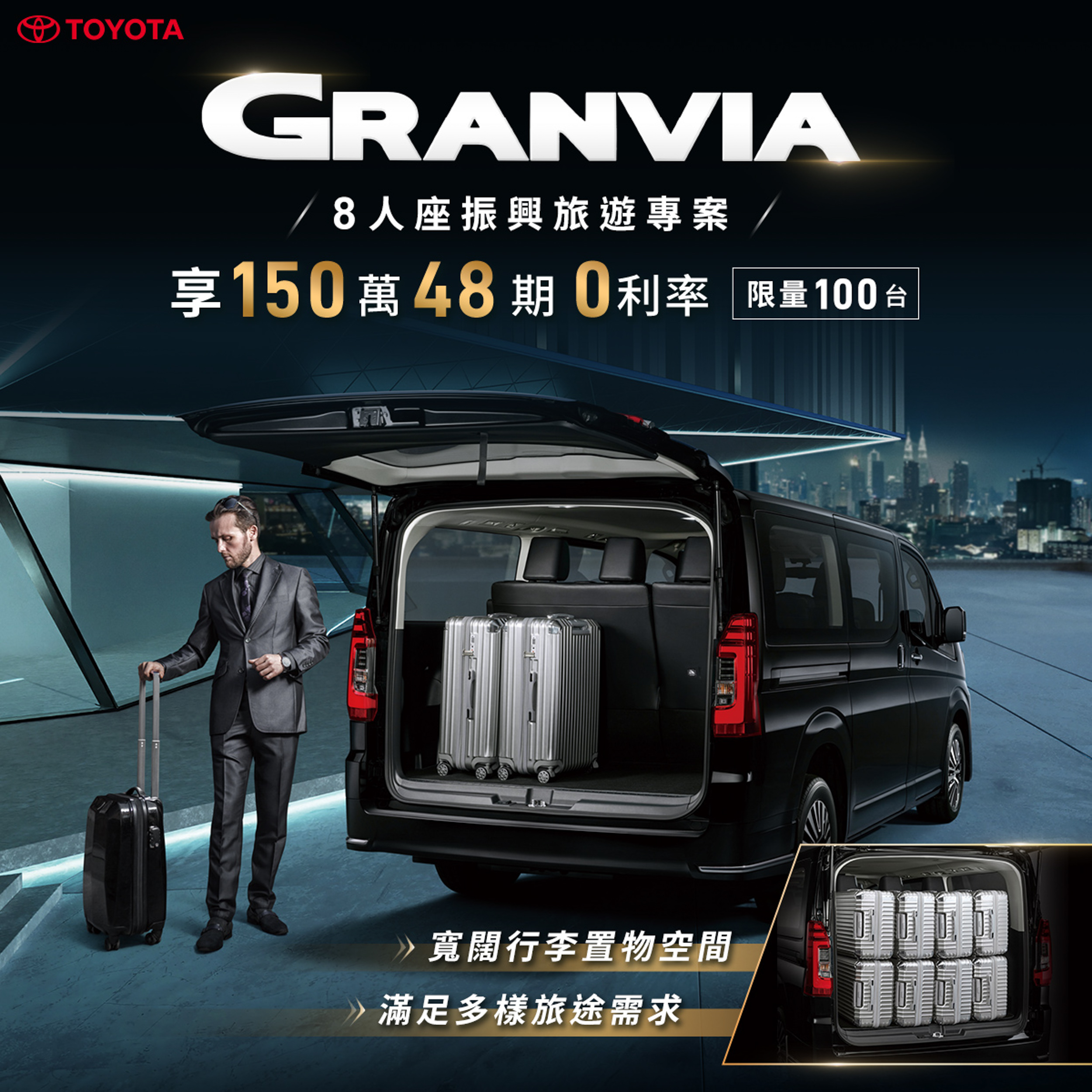 因應疫情管制逐漸鬆綁,和泰汽車特別推出 Granvia 8 人座旅遊振興專案,即日起至七月底提供 Granvia 8 人座豪華版限量 100 台,150 萬 48 期 0 利率購車優惠,讓消費者享有低頭款,就能輕鬆入主 Granvia 8 人座多功能豪華商旅座駕。