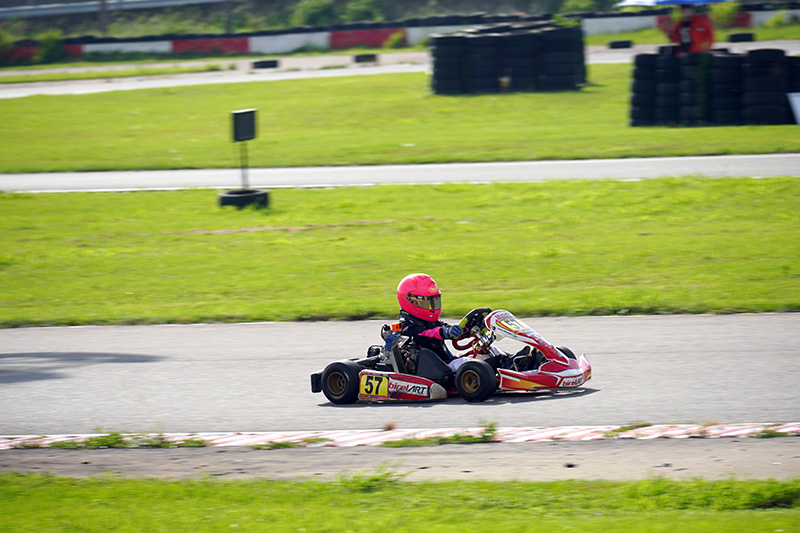 李羽晨坐上卡丁車的架式一點也不輸給成人車手。