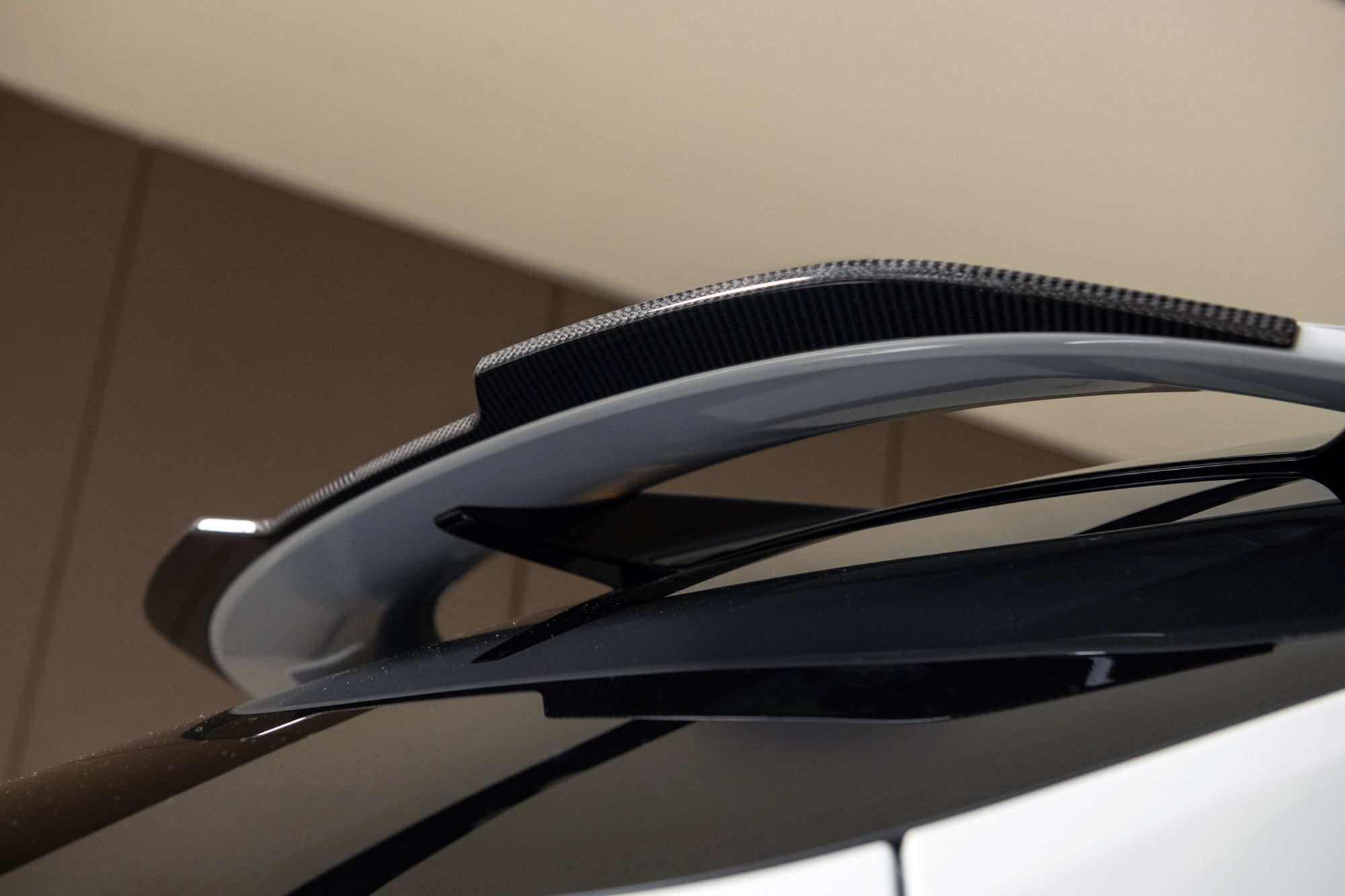 車側一體成形的無框車門設計,側窗玻璃與車身無縫相接,與平順流暢的B柱線條相互呼應。車尾線條擁有美學與空氣力學雙重考量,車頂新增擾流設計延伸,可有效增加下壓力並提升高速穩定性;搭配加大的成對車尾分流器,與全新設計的大直徑四出排氣尾管。