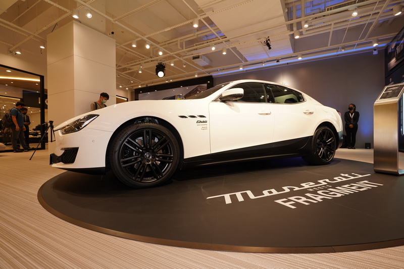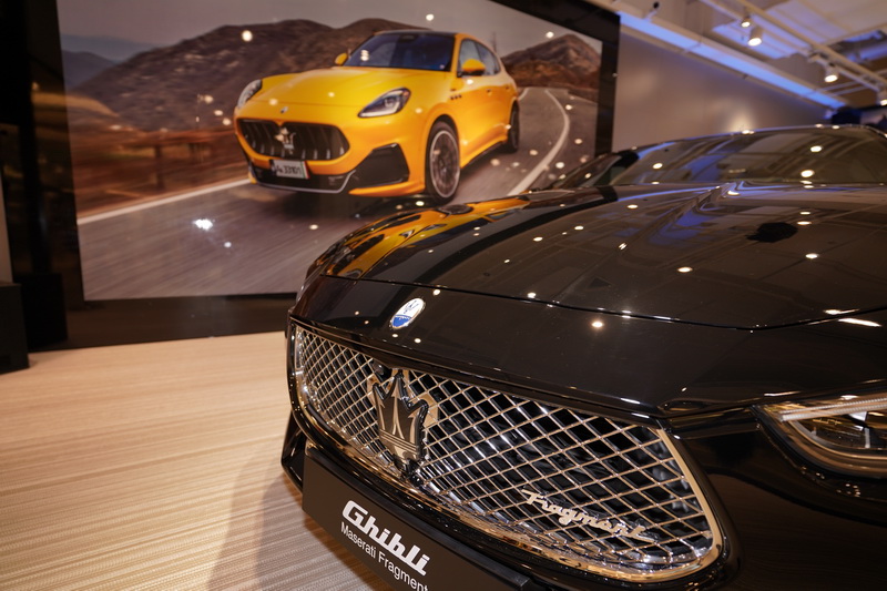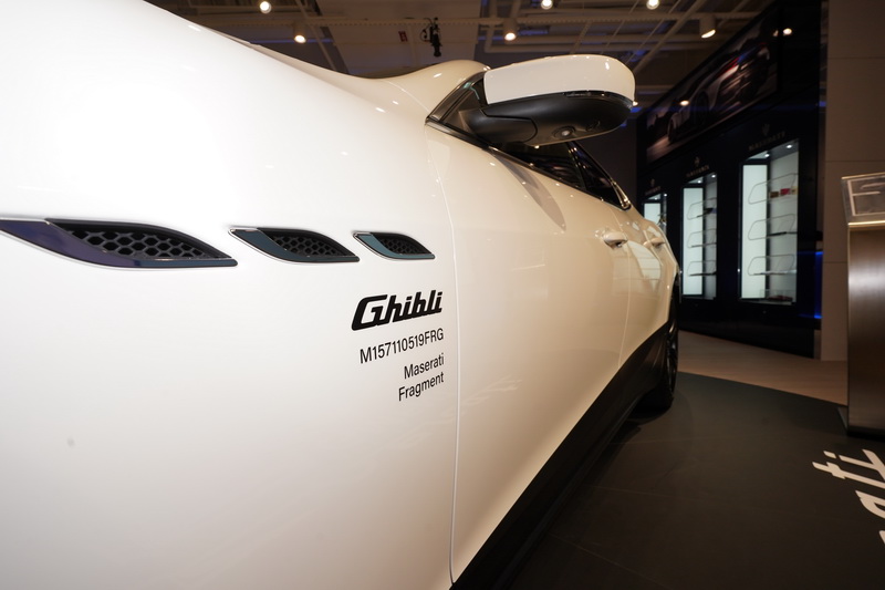 繼先前在【Maserati x 藤原浩】快閃店風光首演的Ghibli Fragment Opera Bianca歌劇白之外,另一款限定車色Opera Nera歌劇黑,也藉由Maserati台南品牌形象館開幕活動首次在台灣亮相,兩款配色都在車身下緣斜切出一道消光處理的黑色區塊,突顯打破框架的潮流態度之餘,也巧妙承接同為消光黑的20” Urano限定輪圈;此外,重現第一代Ghibli經典網狀格柵結構的車頭進氣壩右下角附有Fragment銘牌,C柱上三叉戟廠徽也改為雙閃電標記,前葉子版散熱鰭孔下方則轉印上專屬文樣:Ghibli M157110519FRG Maserati Fragment。其中M157為Ghibli的車型代碼;110519記錄藤原浩於2019年11月5日首次到訪義大利蒙地拿Maserati 設計中心;而FRG則是 Fragment的縮寫。