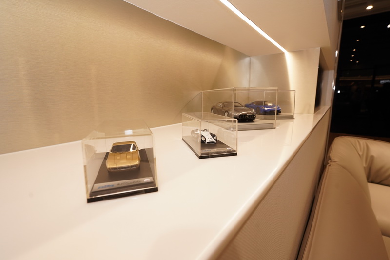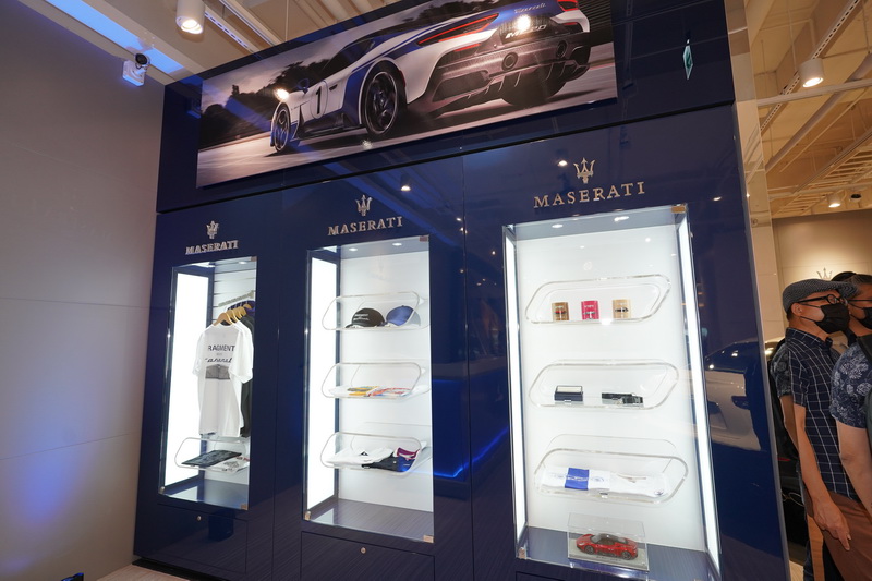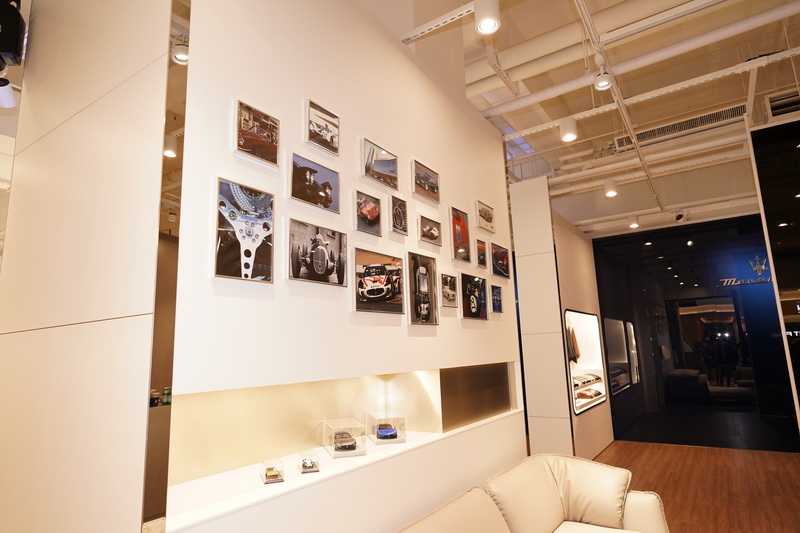 來到選配區的另一側,提供賞車客戶小憩片刻的VIP Lounge同樣充滿義式美學設計,無論是質感細膩的頂級皮革沙發、彰顯品牌百年歷史與純正賽道精神的照片牆,或是在此享用的義大利咖啡及義式茶點,都讓人充分感受宛如身處義大利般的濃厚義式奢華氛圍。此外,對於喜愛Maserati的消費者來說,品牌精品陳列區更是不可錯過的一大重點,不僅能夠搶先收藏最新的MC20模型車、回顧品牌歷史淵源與設計初心的經典古董車服飾,由Maserati攜手藤原浩設計的Fragment限量聯名精品也會同步展售。