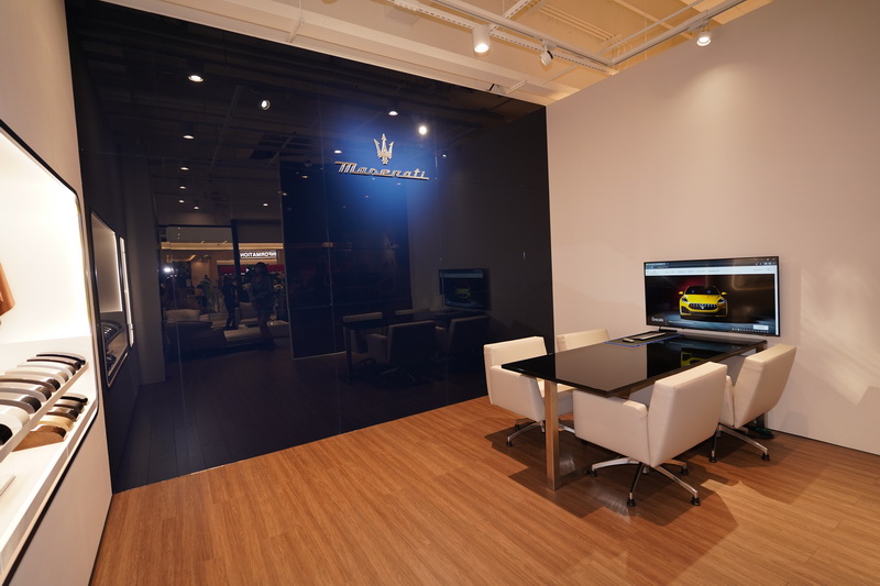 不僅提供開闊明亮的賞車空間,Maserati台南品牌形象館也設有與展示中心同等級的客製化選配區,採用隱密性較高的半隔絕空間規劃,讓消費者在此能夠更加輕鬆自在地發揮想像力,透過現場陳列的各式造型輪圈、車色烤漆色板、頂級皮革選樣與多種飾板材質,搭配出展現自我品味的個性化車款,也可利用選配項目更為豐富、自由度也更高的線上客製選配系統,進一步勾勒出心目中理想車款的具體樣貌。