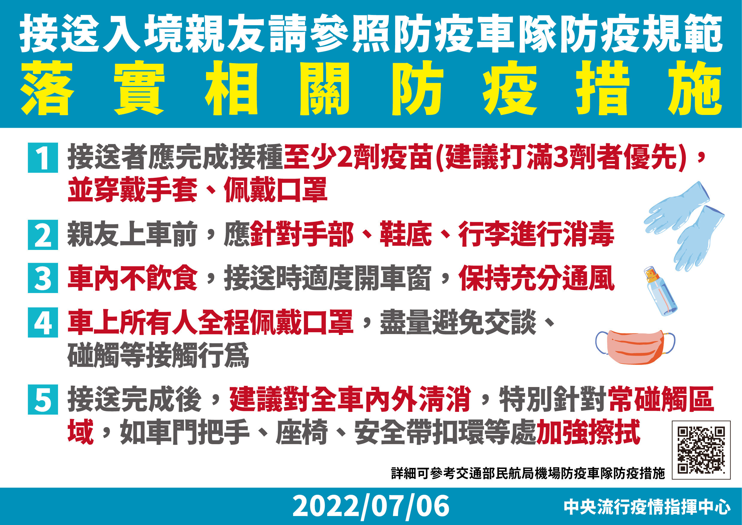 一、接送者應完成接種至少2劑疫苗(建議打滿3劑者優先),並穿戴手套、佩戴口罩。