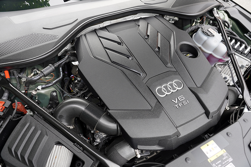 動力配置上,搭載了3.0升V6 汽油渦輪增壓引擎,加上48V 輕型複合動力系統,最大馬力為340hp及最大扭力達500Nm,並搭配Tiptronic 八速手自排及quattro 智慧型恆時四輪傳動系統,動力飽滿不在話下,全力跑起來份量十足,十分有快感,畢竟是輛超過5米的大車,不太可能說它有多靈巧,不過在山道上的可控性仍高,要維持一定的速度不算困難。