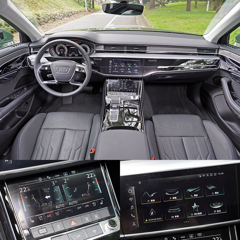 A8 55 TFSI quattro享譽版在全面配置數位座艙後下,整體操作介面都十分就手,我甚至認為現行世代的Audi新車,大量使用觸控螢幕介面,比起過去用大型旋鈕為主軸的介面來的更直覺好用,想要什麼操作什麼功能都可以直接觸控,不用再用旋鈕轉來轉去,便利性更高。