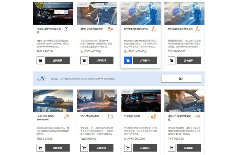 BMW之所以將部分功能改採訂閱制的原因是每個地區的電動車主使用配備的狀況不盡相同,例如加熱座椅的使用依不同緯度的國家有不同的使用期間,車主可依自身需求選擇月費制、年費制甚至直接買斷該功能,另外部分地區也可在ConnectedDrive中發現許多功能也都列入訂閱服務的項目內,以台灣市場為例就有Apple CarPlay、Driving Assistant Plus、M款跑車化電子懸吊、方向盤加熱、遠光燈切換輔助、加熱座椅等功能。