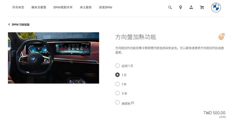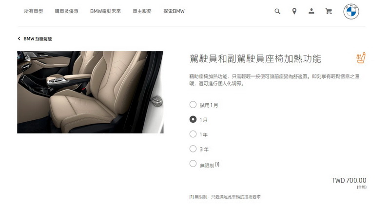 BMW電動車車主最近可能會發現部分功能開始採訂閱制的收費服務,以台灣市場為例每個月支付新台幣700元便可取得加熱座椅功能,如要採無限制的方式使用則須支付新台幣1.35萬才能將此功能完全解鎖。