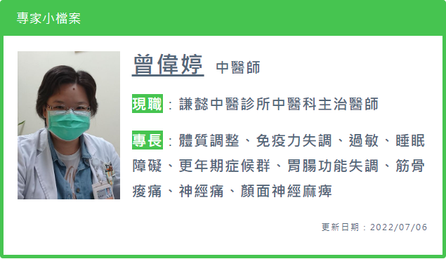 最後,曾偉婷中醫師也強調,更年期不是疾病,是一個自然過程,是身體正在適應準備進入下一個新階段,用中藥滋陰潤燥,補充身體突然缺失的陰液,並以針灸下針於寧心安神的穴位,皆可以幫助身體調節自身陰陽的平衡,大幅改善更年期不適的症狀,順利渡過這段過渡期。
