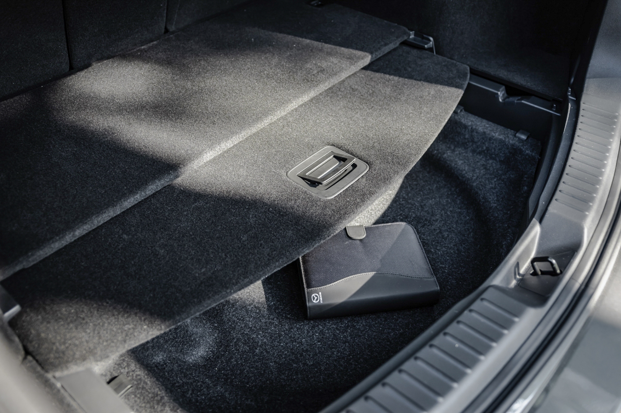 一輛乘載全家外出旅行的 SUV 務必具備足夠的後行李廂空間,CX-5 Carbon Edition 後行李廂全新設計的多功能隔板能依據置物需求靈活運用空間,利用隔板下方的隱蔽空間,方便車主放置更多的個人物品。除此之外,在門板上的置物空間也為智慧型裝置設計專屬溝槽,提供 3C 產品放置空間。
