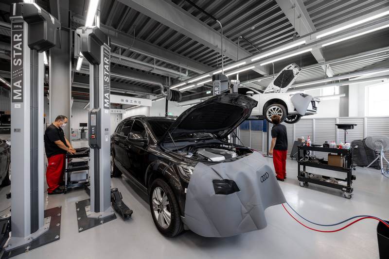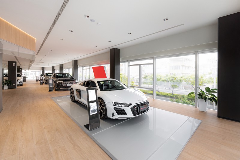 全新Audi鳳山展示暨服務中心座落於高雄市鳳山區樞紐地段,鄰近鳳山文山特區與新鳳山火車站,且能快速連通國道一號中山高速公路。據點占地總面積逾千坪,採4層樓專層建造,1樓規劃新車專區並設有顧客休憩與兒童遊戲區域,2樓則為Audi Sport專區,雙層新車銷售區域共展示14台包含新世代車款、Audi Sport性能車款及e-tron 純電系列。而Audi Approved: Plus嚴選中古車及服務廠則分別位於3、4樓層提供專屬優質服務,為提供四環純電車主便利的充電服務,據點內同步設置180kW的Audi 極速快充站,30分鐘內可為e-tron 愛車充飽80% 電力,並採24小時提供快速充電服務。為使體驗更加完整,服務廠設有快速保養工作位,同時四環車主等待愛車保養過程中,更可於任一樓層多樣化設施及休憩區域,享受優質服務。