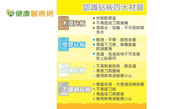 海洋大學食品安全與風險管理研究所助理教授莊培梃說明,砧板材質有很多選擇,以下就四大類材質加以說明: