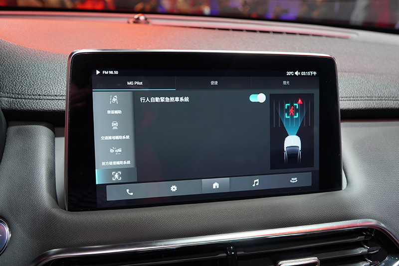 (附Stop & Go) -TJA交通壅塞輔助系統 -LKA車道保持輔助系統 -LDW車道偏離警示系統 -SAS智能限速系統 -FCW前方防碰撞預警系統 -AEB自動緊急煞車系統 -LCA車道變換輔助系統 -BSD盲點偵測系統 -RCTA後方盲區偵測系統 -DOW開門盲區警示系統 -IHC遠近光燈自動調節系統