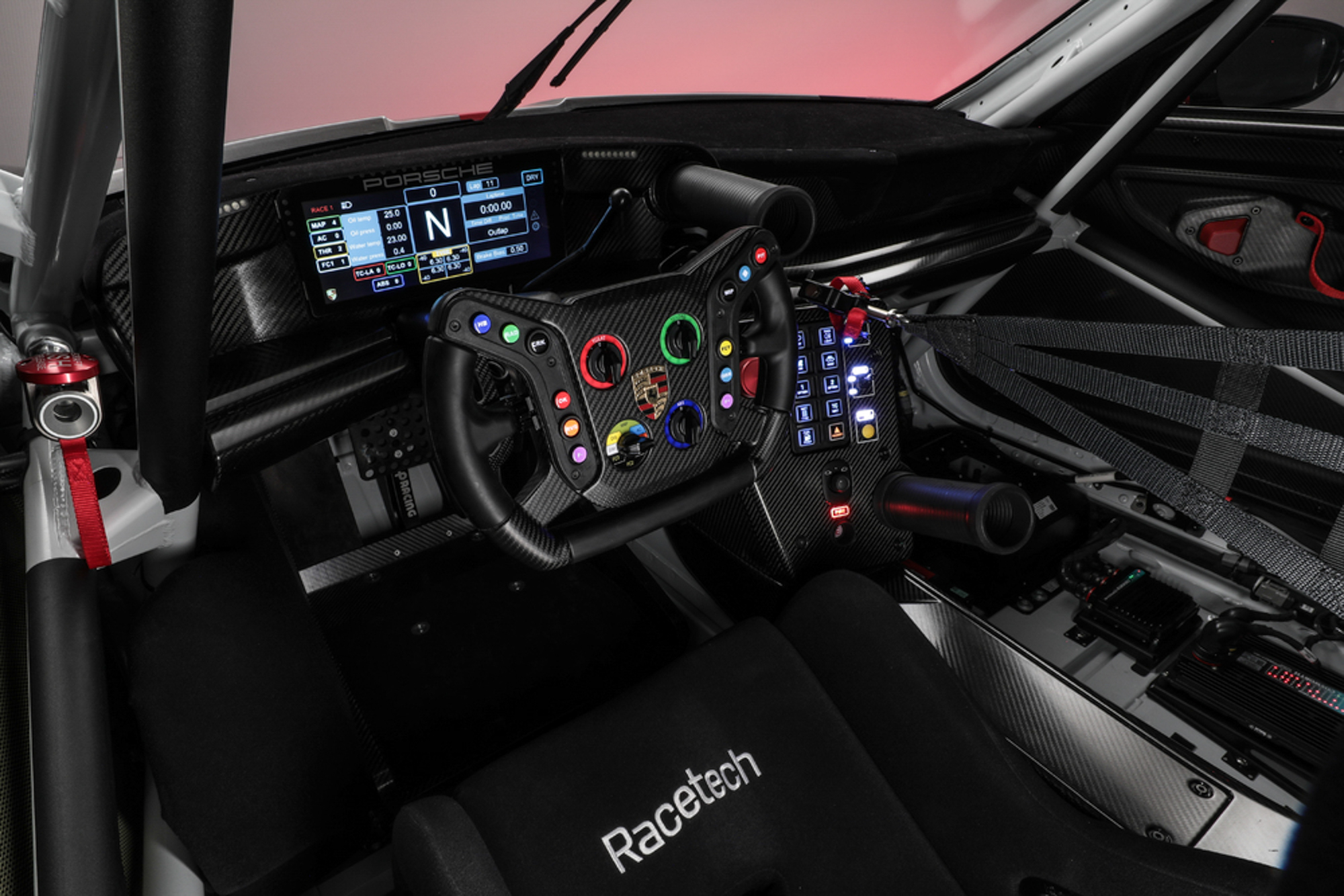 全新 911 GT3 R 在安全上更是毫不妥協。座椅被移至更靠近汽車正中心的位置,並以更符合人體工學的座椅位置與改良過的防滾架和新開發的 FIA 側面撞擊保護裝置相互結合。與前一代相同,方向盤和踏板皆可應駕駛員的需求縱向調整。保時捷的專業團隊也改良了六點式安全帶:透過特殊的斜面設計,舌片現在可以更快速地滑入扣洞中,在維修站更換駕駛員時可以節省大約一秒鐘的時間。方向盤的設計也以前一代的基礎得到進一步升級,其採用了一些在最新一代 911 GT3 Cup 和 911 RSR 賽車中已通過驗證的元件,例如:10.3 英寸的螢幕來自統一規格賽常勝軍 911 GT3 Cup,多重開關的概念來自利曼的冠軍賽車 911 RSR。