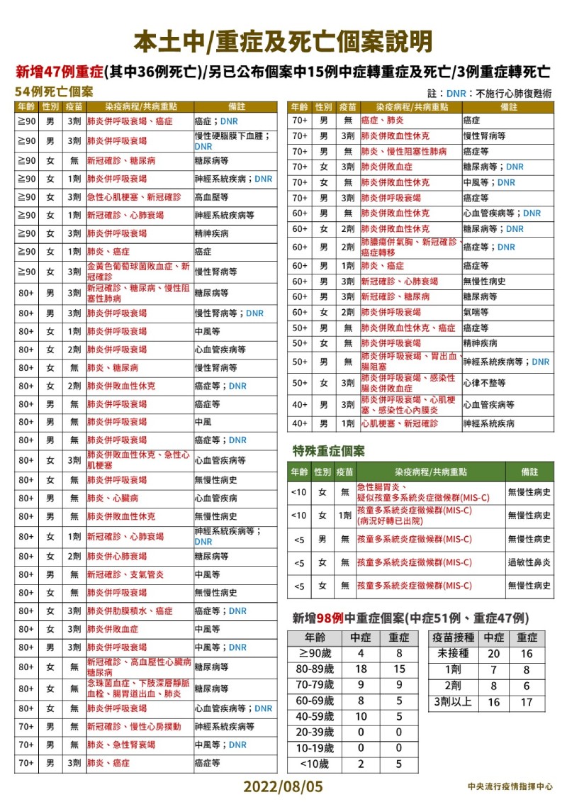 第三位:5歲男童,7/4確診新冠肺炎,7/30出現發燒、皮疹等症狀,8/2送往急診,出現比較嚴重的相關症狀,包括血壓偏低,8/3出現休克,隨即轉入加護病房使用免疫球蛋白和升壓劑治療後,病況目前穩定。