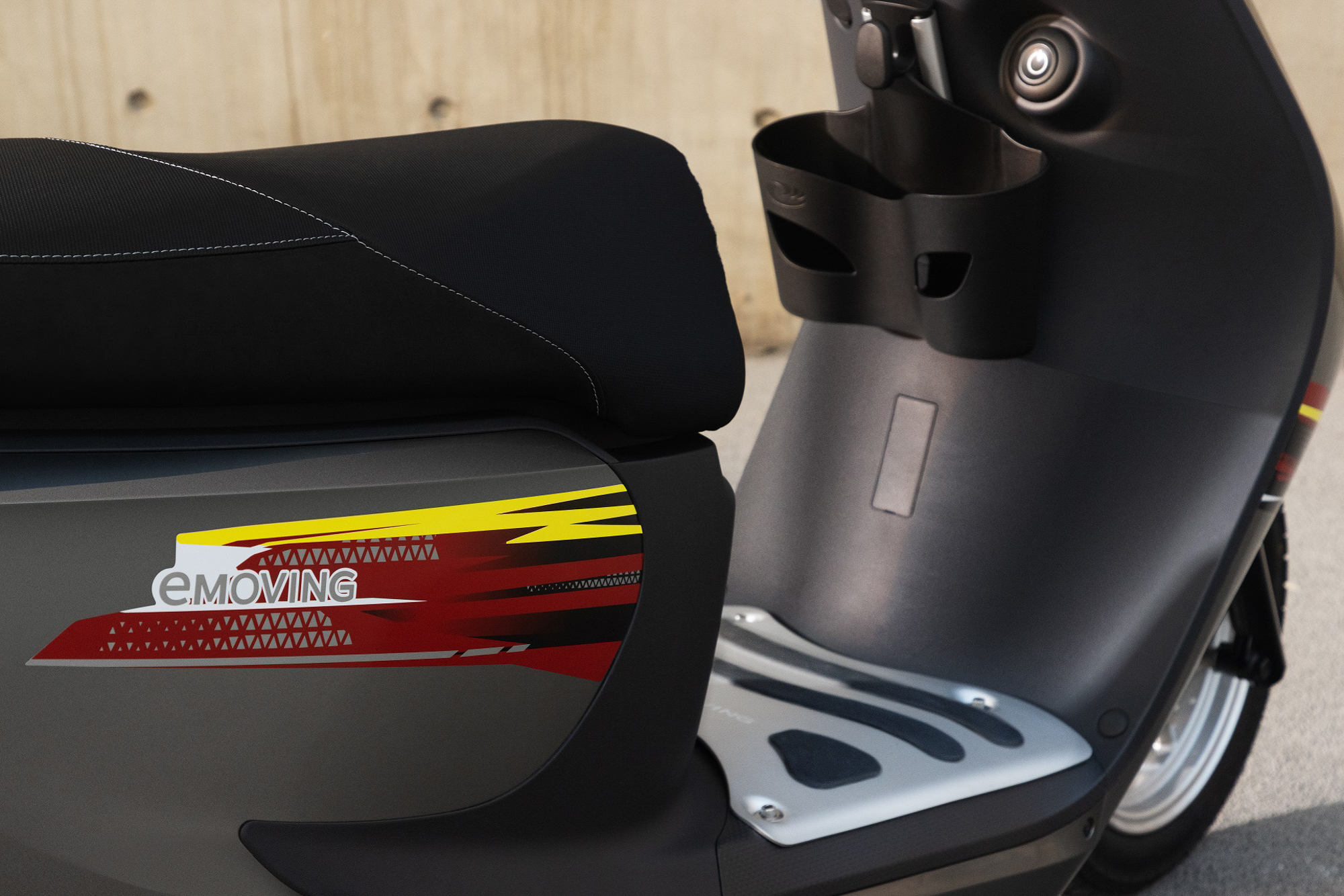 eMOVING 新款勁炫 125 承襲自 2019 年推出的 iE125 動力系統,0-50km/h 僅 3.9 秒的加速性能及標配 BOOST 加速功能,騎乘感受上調整坐墊角度,使前緣流線更符合人體工學;輔助倒車功能優化,透過簡單催動電門或按壓倒車鍵,即可進行前進後退;勁炫 125 配備電動中柱、定速巡航、個性化數位儀錶和感應鑰匙等實用性高的配備。外型方面,車頭側邊下緣利用 S 型雕塑,透過折角創造出明顯的光影效果,提升車輛的立體感。正面則透過線條拉伸,呈現出的俐落感和車輛充沛性能相呼應。