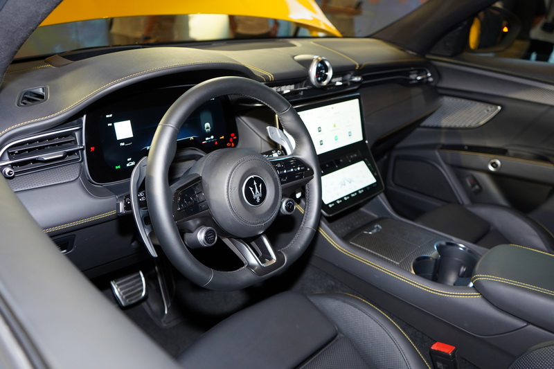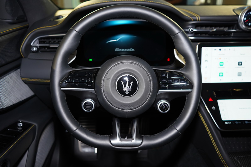 全新三幅運動造型多功能方向盤,從來自MC20的引擎啟動鍵設計、行車模式旋鈕、多媒體與ADAS控制鍵,到標準配備的固定式鋁質換檔撥片,主要功能盡在駕駛手中。憑藉著2901mm的長軸距設定與傑出的空間規劃,Grecale坐擁同級最大的車室空間和行李廂空間,搭配全車多處USB充電介面、整合後座6.5吋觸控螢幕的三區恆溫空調系統、靈活多變的儲物空間,與Grecale GT Launch Edition列為標配的手機無線充電裝置,滿足全車乘客日常實用需求;座艙內更廣泛使用皮革、碳纖維與木質等天然材料,重新演繹義式工藝傳統,並透過頭枕上壓印的三叉戟徽飾、上下分區設計的環繞氛圍燈,以及同樣追求以天然材質傳遞純粹美聲的義大利Sonus Faber頂級音響系統,共同營造出令人陶醉的沉浸式奢華享受。
