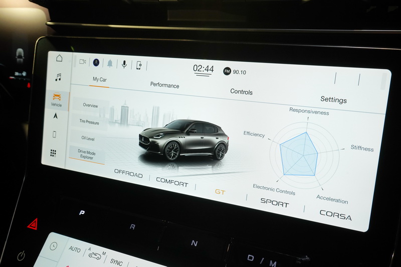 面對日漸嚴苛的環境議題,Maserati以品牌自主研發的高效混能動力完美回應,Grecale GT搭載2.0L渦輪引擎,並導入48V輕油電系統,由煞車動能回充系統為48V鋰電池模組儲能,不僅可為引擎啟停功能供應所需電力,同時透過BSG皮帶啟動發電機帶動eBooster電子渦輪,在滿足排放法規標準與經濟性之餘,更可帶來同級最強的300hp/450Nm動力表現,匹配換檔流暢且響應迅速的ZF八速手自排變速箱,僅需5.6秒即可完成0-100km/h加速、極速可達240km/h;無論是看似平淡無奇的日常通勤、或是熱血彭湃的激烈操駕,透過Grecale GT提供的COMFORT舒適、GT巡航、SPORT運動、OFF-ROAD越野等四種駕駛模式,以及包括垂直、縱向與橫向360度全方位管控的VDCM車輛動態控制系統,使操駕回饋與駕駛的期待愈發契合,加上極具特色的排氣聲浪不斷鼓舞,更能感受超乎想像的操控樂趣與流暢動態。