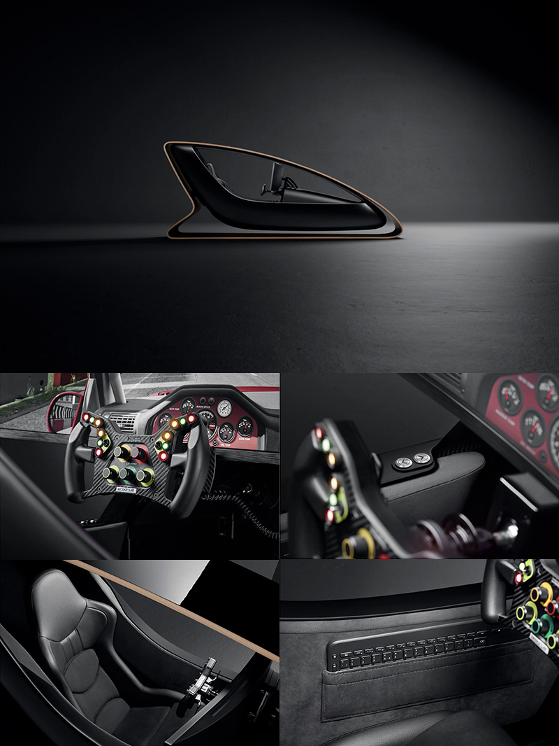 Prodrive賽車模擬器是與著名的汽車設計師Ian Callum率領的CALLUM團隊共同設計打造,整體造型就有如飛行器的座艙,有著極為流線的外型,外殼與內部裝設座椅與螢幕的支架皆以碳纖維製成,方向盤與電動可調踏板模組則是安置在由16 層樺木製成底座上,配置Simucube 2 Pro伺服直驅基座與Precision SIM LM Pro賽車模擬方向盤,搭載之訂製模擬器電腦配有NVIDIA ® GeForce RTX ™配有顯示卡搭配AOC 49吋5K曲面螢幕,同時還配有B&W PX7揚聲系統。