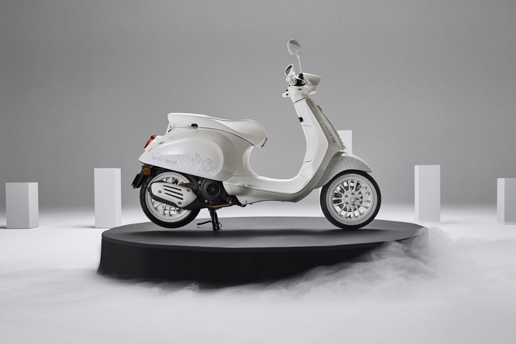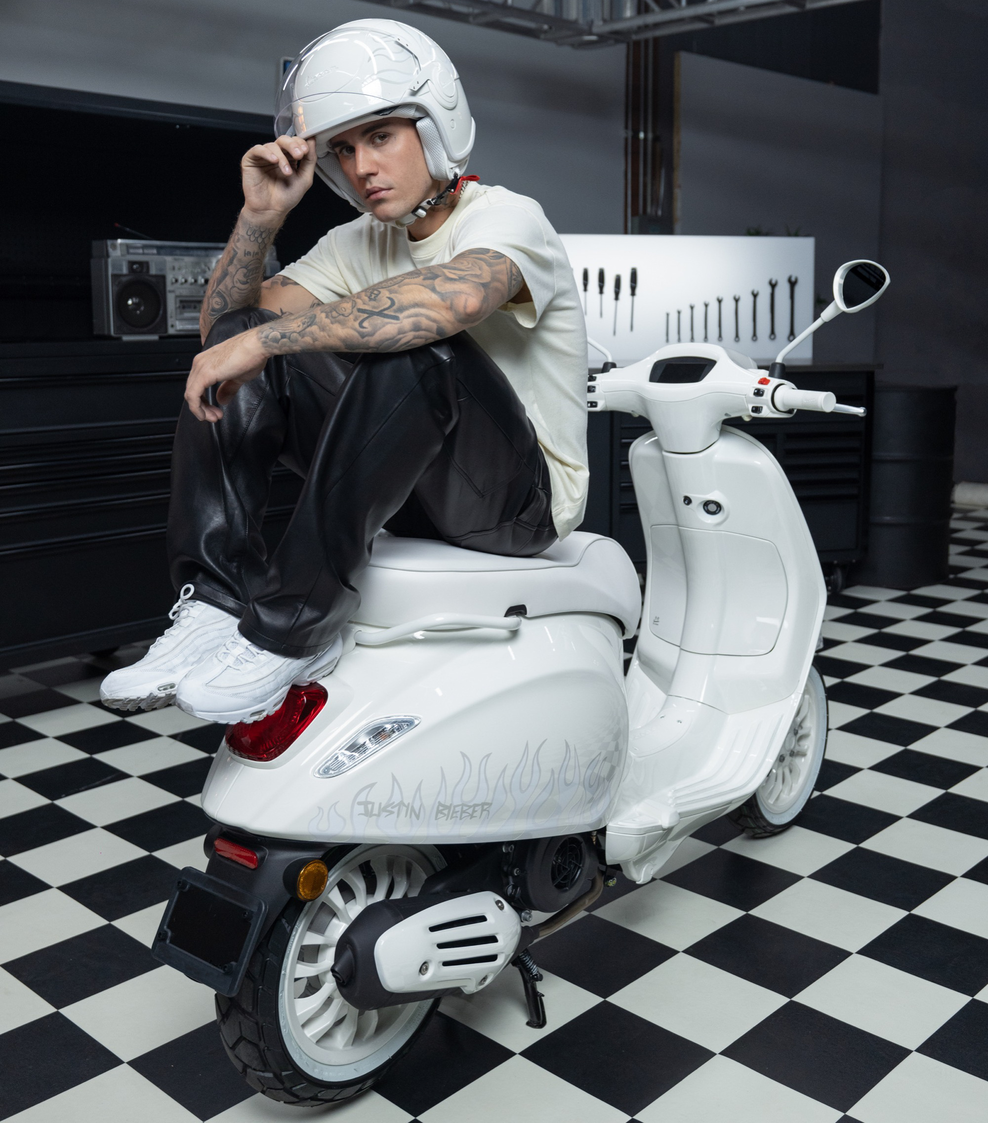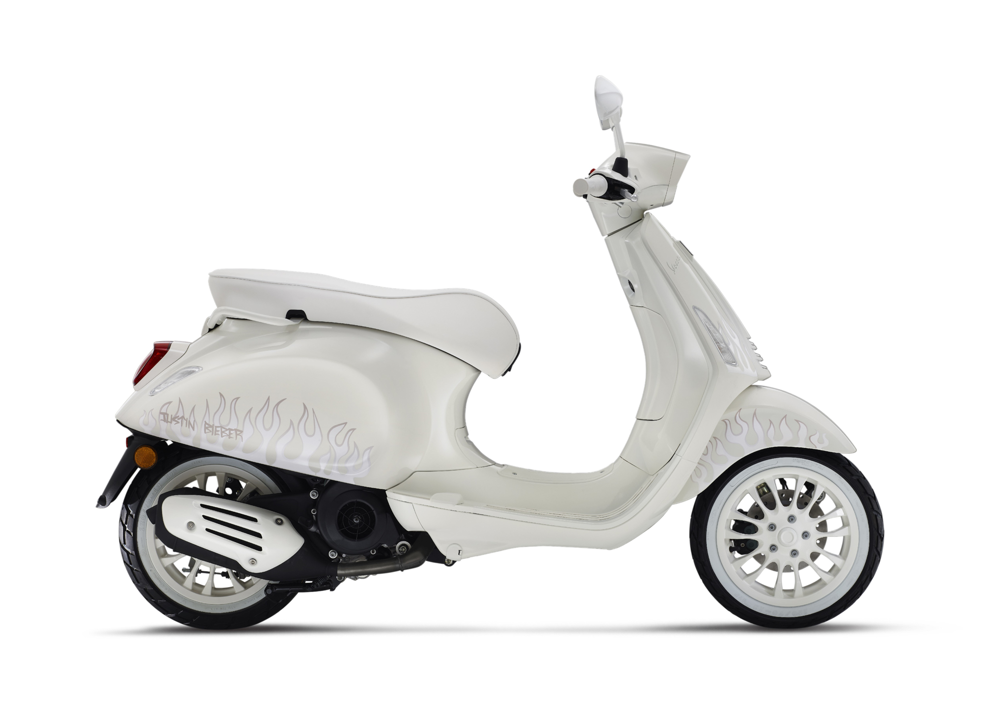 JUSTIN BIEBER X VESPA 聯名特仕版為今年度限定發售車型,本次聯名企劃更為了這台特仕版打造專屬周邊配件,包含:JUSTIN BIEBER X VESPA 真皮提袋(上有銀白火焰圖騰與聯名logo的設計,可安裝於專屬後書包架上)、全白後書包架、後置物箱、後置物箱架、與後置物箱背靠,也都將會引進台灣,讓你/妳輕鬆打造時尚又實用的潮帥白駒!小賈斯汀於此同時也如火如荼地進行專輯《我的正義/JUSTICE》世界巡迴演唱會,並帶著最新單曲"Honest"強勢回歸,全方面佔領聽覺、視覺、及騎乘快感的沉浸式感官饗宴。想釋放蠢蠢欲動的潮流因子,可洽Vespa 全台授權經銷實體門市,或於Vespa官方商城線上購車。
