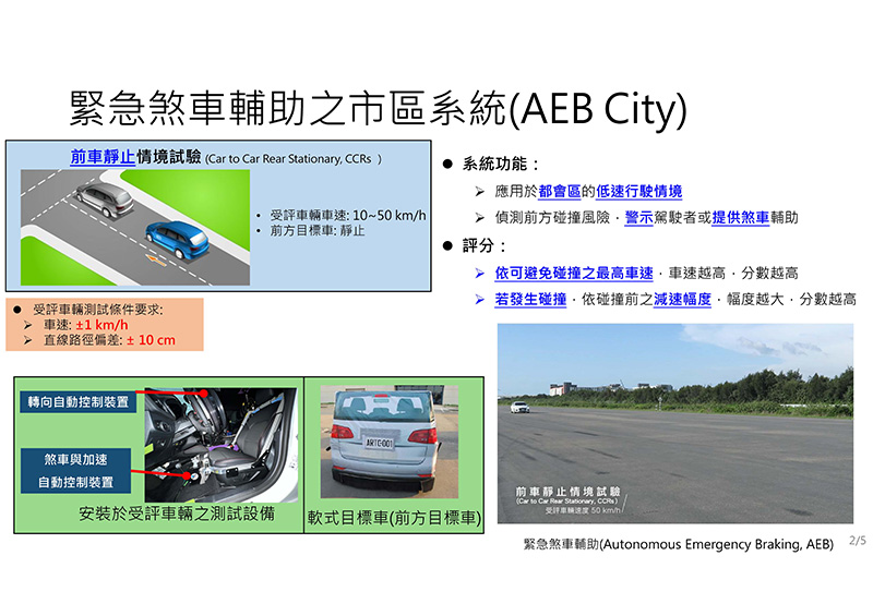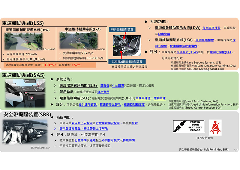 交通部指出,我國自87年起與歐盟、日本、澳洲等國家地區相同實施強制性的車輛型式安全審驗制度,確保車輛具備最基本之安全性,國內新上市小型車輛皆須符合各項車輛安全法規,並經檢測審驗合格,才能於市面上銷售及領牌使用行駛道路;而部分國家地區另外透過非強制性的新車安全評等制度(New Car Assessment Program,NCAP),於市面上購買銷售量較高的小客車,以更嚴格於強制性安全法規之標準進行試驗,並以星等呈現結果,以提供消費者購買車輛之參考,並提升該區車輛安全性及促進產業技術發展。