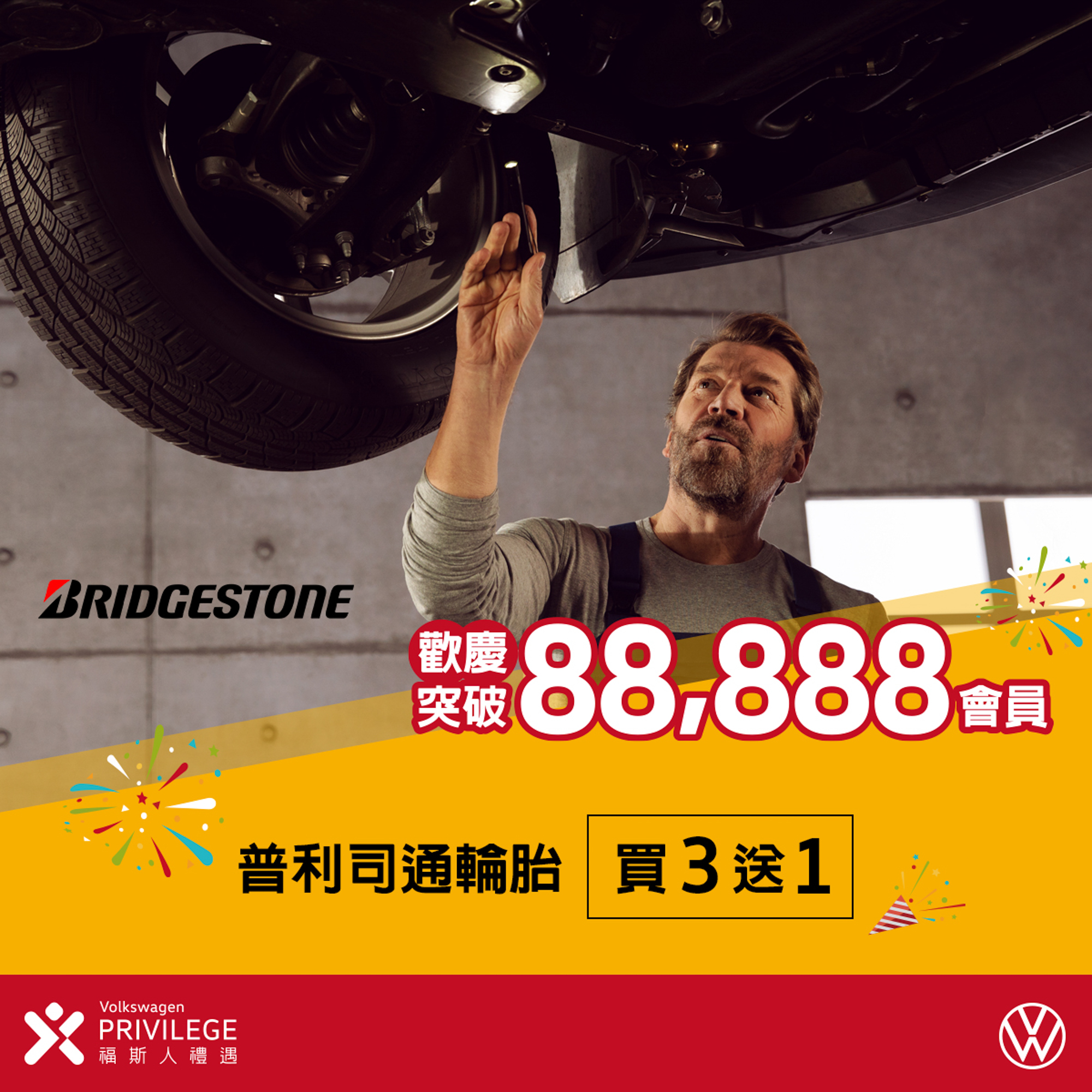 **普利司通輪胎優惠限轎車、休旅車胎,四輪定位費用需自付,不得與其他活動同時併用、實際供應狀況現場為準。更換輪胎皆享輪胎保固方案。