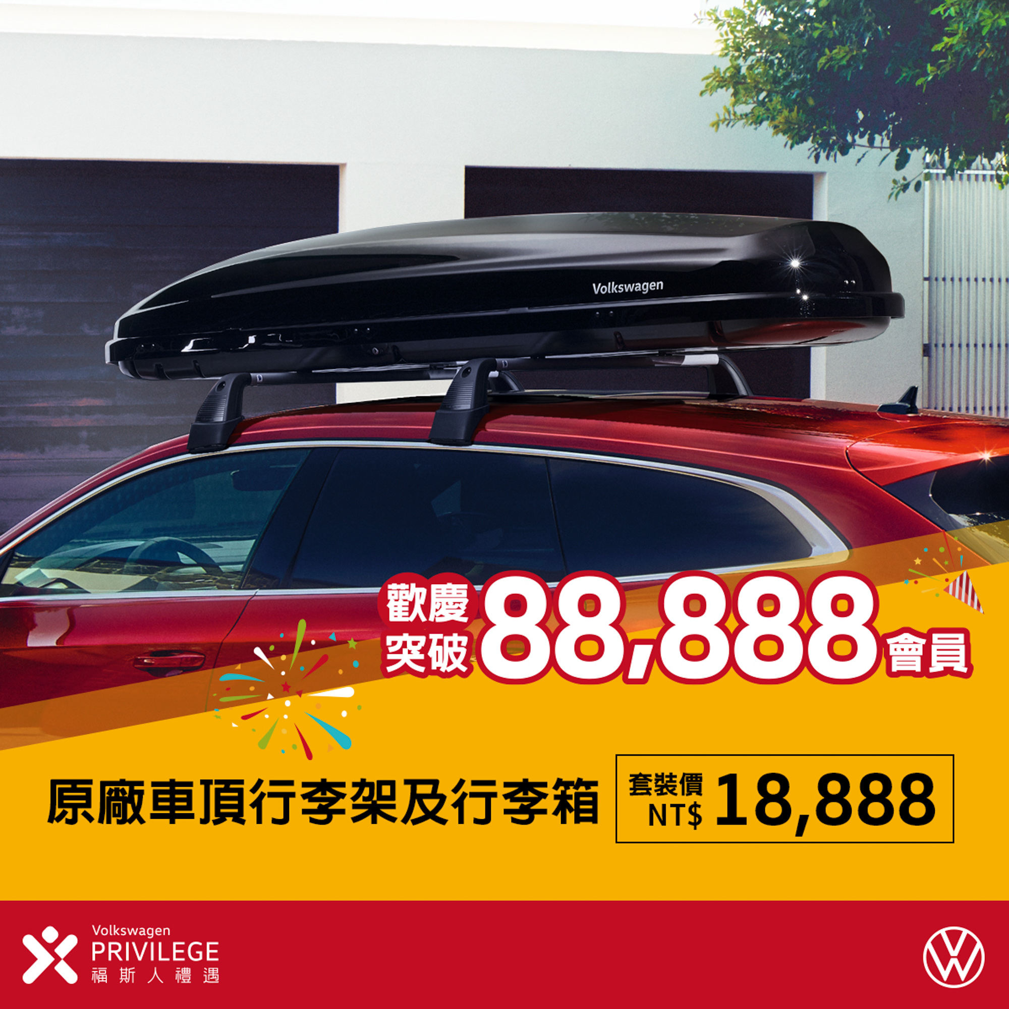 另外,車主於 My Volkswagen® 分享回廠心得,並且加入指定 hashtag 即可抽原廠動態輪圈蓋(價值 5,460 元)、2 天 1 夜秘境雙人遊(價值 19,600 元)等 8 項豪華大獎。為打造車主獨一無二的質感生活,「福斯人禮遇計畫」車主會員獨享,原廠車頂行李架及行李箱套裝優惠價新台幣 18,888 元,指定原廠耗材零件 8 折起,原廠機油買 4 送 1,普利司通輪胎買 3 送 1,原廠 GTI 及 R 精品優惠58折起,台灣福斯汽車敬邀車主預約回廠健檢,隨時保持最佳車況,親臨感受德系工藝。