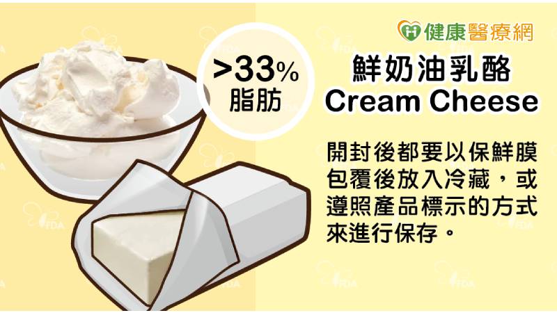 食藥署建議,乳酪產品開封後都要以保鮮膜包覆後放入冷藏,或遵照產品標示的方式來進行保存,尤其Cream cheese保存期限短,更應儘快食用完畢,避免腐壞。