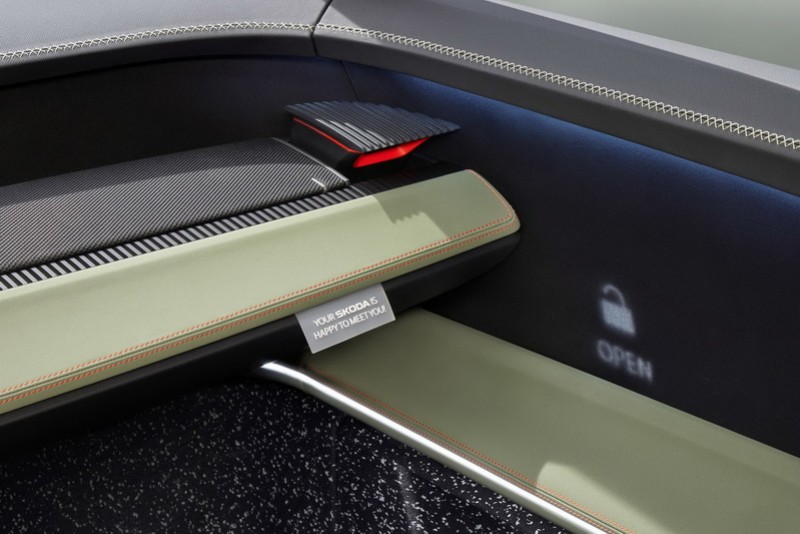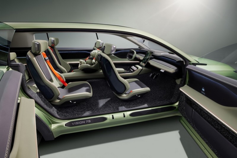 先前Skoda僅公布一張由上往下俯瞰的內裝座椅配置圖,這次則進一步將內裝設計做更詳細的說明,從先前的圖片已知嬰兒座椅是安置在二排座椅中央走道處,為了讓前方駕駛能掌握後方的嬰兒動態因此在車頂處安裝一組攝影鏡頭,影像會直接傳送到中控螢幕讓駕駛免除轉頭查看的不便,另外駕駛模式還增設了一組“Relax”模式,若在充電過程中選擇該模式,原本直立的中控螢幕會轉為橫置方向以便觀看電影,同時方向盤與儀表會向前滑動以創造更多的活動空間,前排座椅也可向後旋轉營造出一個舒適的休憩環境,車款稍晚發表後將會有更多訊息釋出,屆時再為網友們持續更新。
