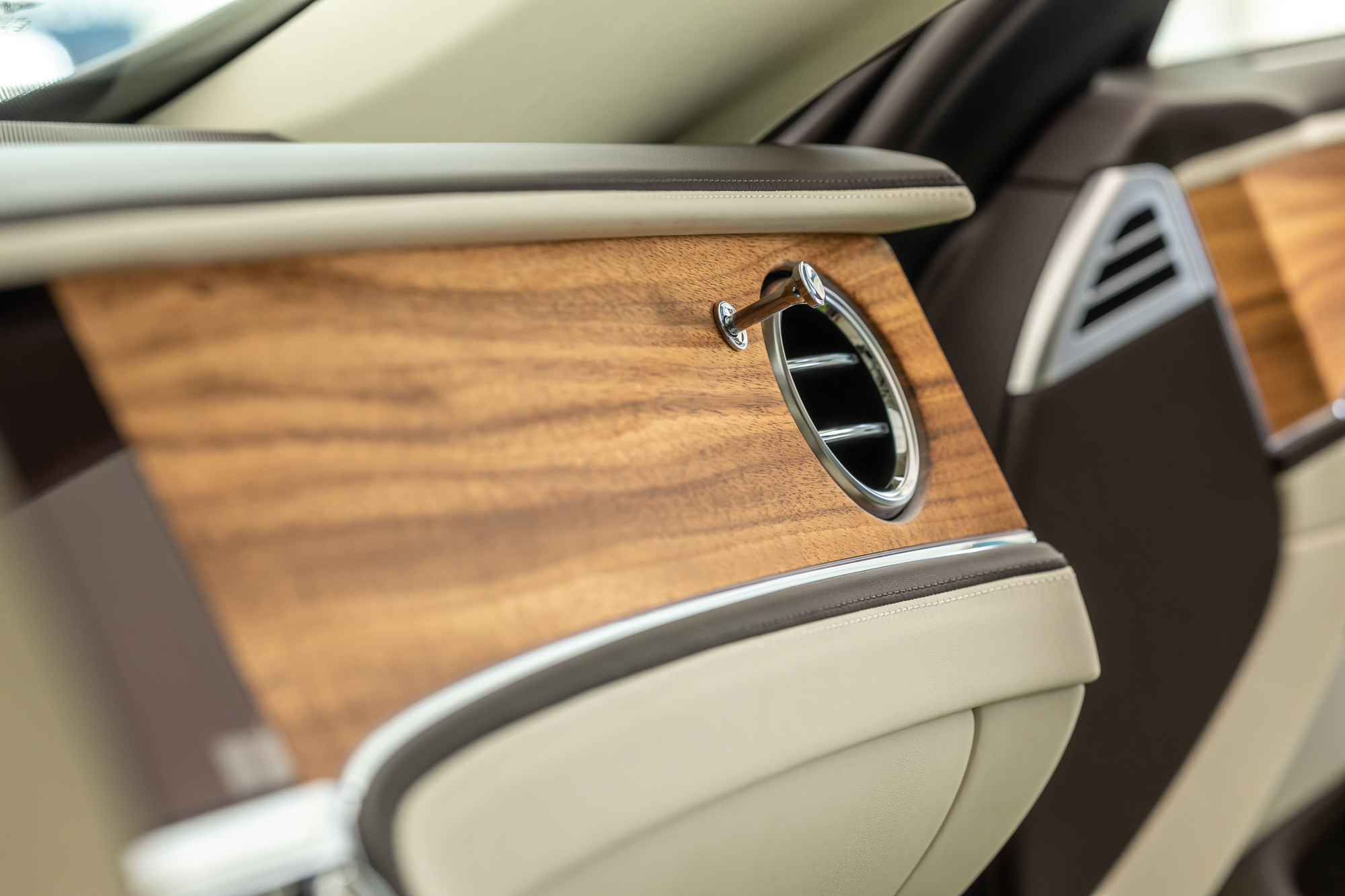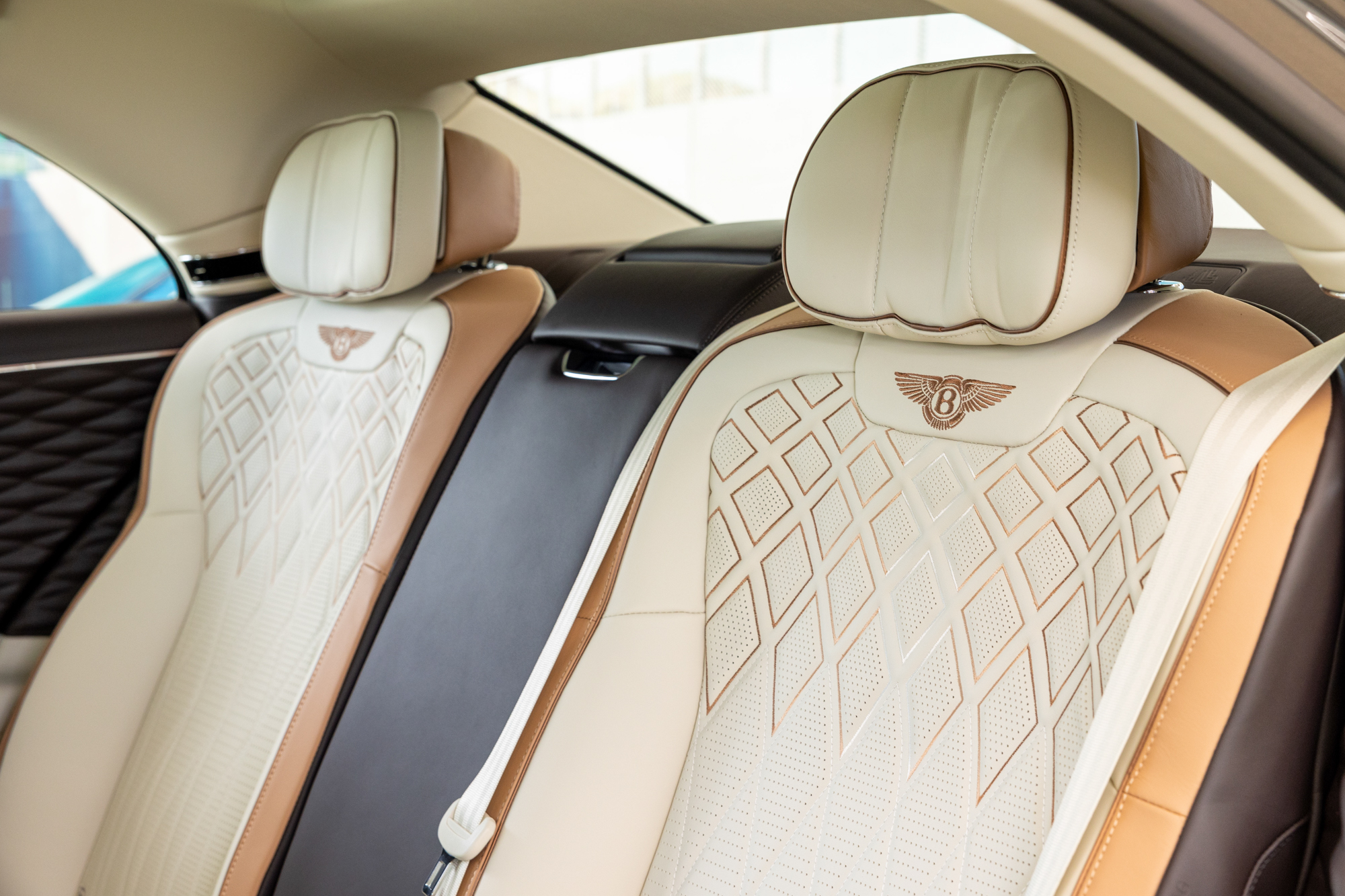 包含於獨特版本內的另一特點,是以細孔紋理相思木嵌合的儀表飾板,相較於亮面木紋飾板減少90% 的表面塗層,降低環境衝擊更讓獨一無二的木質紋理綻放細緻溫度,3層極薄的表面塗料總共僅厚0.1mm,呈現難以企及的工藝水準。中央扶手以優雅的亞麻色鋼琴烤漆塗佈,結合3色內裝主題提升車室氛圍至全新高度,設計上更參照1955年S1 Flying Spur,以其歷久彌新的風格,延續Flying Spur經典傳奇。