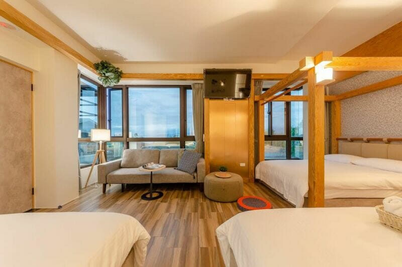如果是一大群好朋友、或者是多個家庭一起出遊,想要住在同一棟民宿,就可以選擇山拾日光民宿。山拾日光有二人房、四人房、六人房等房型,多人入住也可根據人數選擇不同的住宿方案(10人、14人、18人等),民宿內的木質家具營造了溫暖的氛圍,讓旅客們能夠在這裡好好放鬆、也能夠欣賞窗外的田園風光。此外,還有烤肉場地、歡唱設備、兒童戲水池等設備可供租借,就算整天窩在民宿裡,也能夠好好享受!