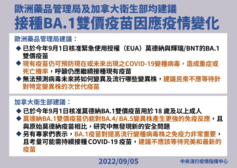 【健康醫療網/記者楊艾庭報導】日前食藥署召開緊急授權審查會議(EUA),同意核准莫德納「次世代疫苗」適用於18歲以上成人主動免疫之追加接種。未來國民將有機會接種,以預防新冠病毒變異株的威脅,中央流行疫情指揮中心專家諮詢小組召集人張上淳教授,今日(9/5)於疫情記者會上公布有關次世代疫苗臨床試驗的資料,以及各國之接種建議,提供民眾參考。