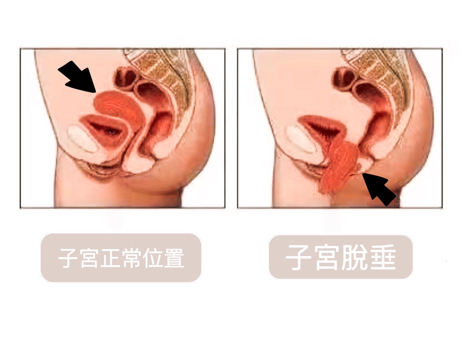 衛福部臺中醫院林新旺醫師指出,子宮陰道脫垂,發生在子宮的韌帶及陰道頂部變弱並塌陷到陰道管中。子宮陰道脫垂的症狀包括陰道受壓或脹滿的感覺就像外陰部有一個小球,有什麼東西從陰道裡掉出來的感覺。尤其老年女性骨盆腔肌肉組織鬆弛,肌膜韌帶的纖維組織減少,易有這類疾病。
