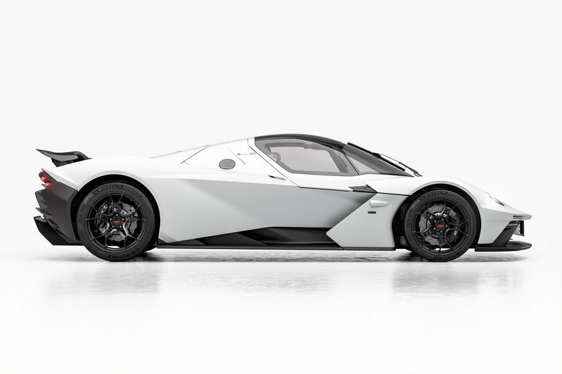 避震器是採用Sachs的減震筒並可在行駛間調整前、後軸的高度,煞車卡鉗也導入輕量化8活塞系統,碟盤標配是金屬材質亦可選購陶瓷碳纖維碟盤,而全車所看到的空力套件除了前分流器、巨型尾翼及後擴散器外,底盤部分也導入了導流設計,盡可能加速氣流在底盤的流動速度以達到最佳的地面效應;內裝部分則是盡可能的精簡,除了一組結合儀表的可拆卸式多功能碳纖維方向盤及桶型賽車座椅外,其他只剩下簡單的引擎啟動鈕、電子手煞車、空調按鍵、大燈開關及排檔座,額外的舒適配備一概從缺,為的就是讓駕駛感受最極致的操駕感受,X-Bow GT-XR售價為284,900歐元(約新台幣889萬)起,每年配額僅100部,有興趣的買家可要快點下手!
