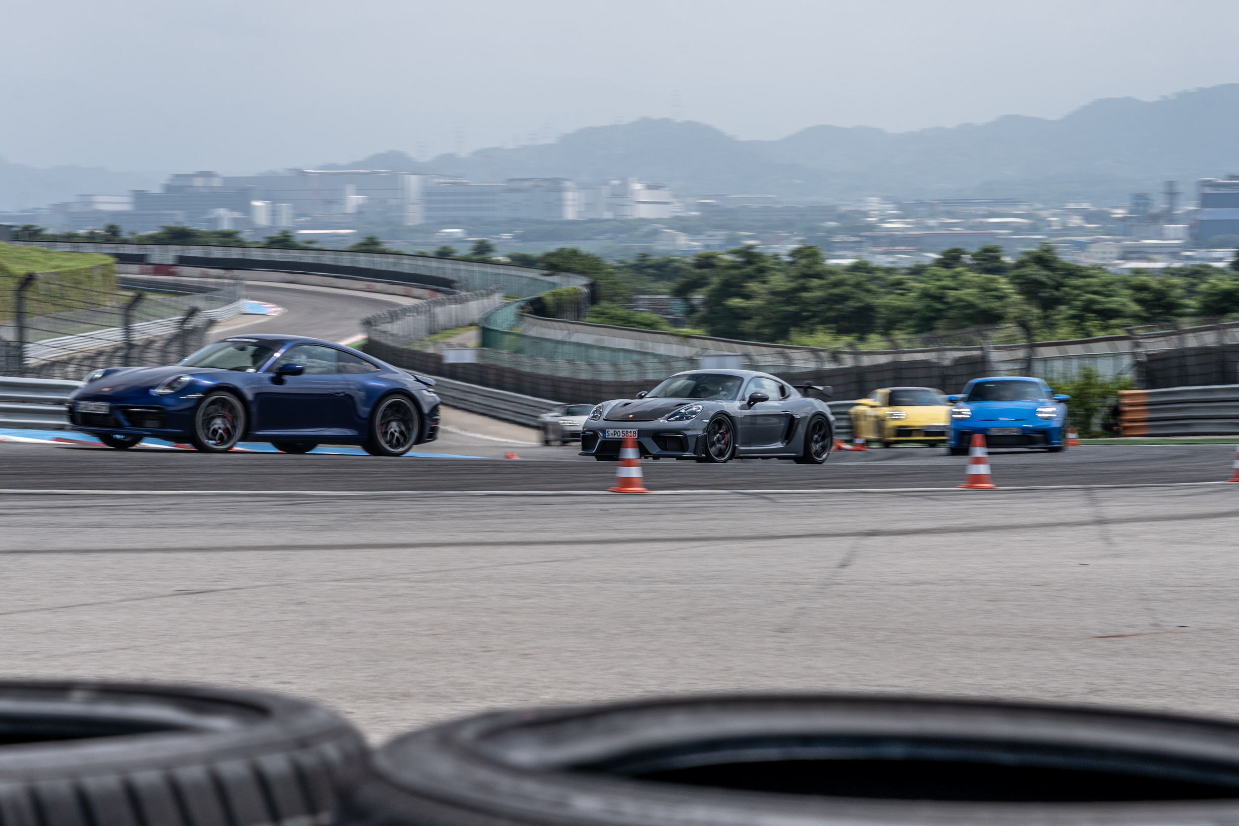 下賽道前,相關駕駛姿勢、觀念與安全宣導是絕對不能少的。 在麗寶賽道的特性中,加上安全因素考量,前方有教練的帶頭壓制車速,對於每一款車的極限是無法淋漓盡致完整領略的,但受保時捷的造車工藝所惠,每一輛車的特性在短短接近一圈的體驗中,卻可以紮紮實實的感受到箇中差異。縱使在車隊中動力輸出與定位較為「斯文」的718 Boxster GTS與911 GTS兩款車,透過不同的引擎位置安排、硬頂與敞篷的車身配置差異,都可感受到後軸的動態區別,以及引擎聲浪的高低不同,但同樣有著極為優異的駕馭樂趣,無論是718 Boxster GTS的輕盈,還是911 GTS後軸的偏擺讓每個彎道處理都能各有巧妙差異,在換到最為刺激、最讓人期待的Cayman GT4 RS、911 GT3、911 Turbo S三款車之前,若用前菜來形容718 Boxster GTS與911 GTS這兩台車是稍帶侮辱的,風味雖然稍微清淡,但箇中風味的層次與功夫,依舊相當耐人尋味。