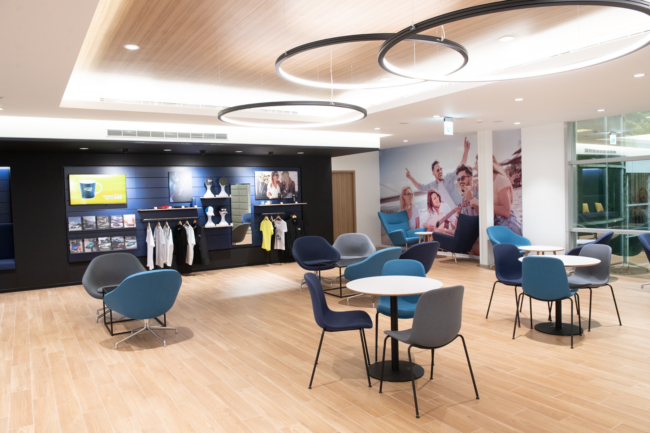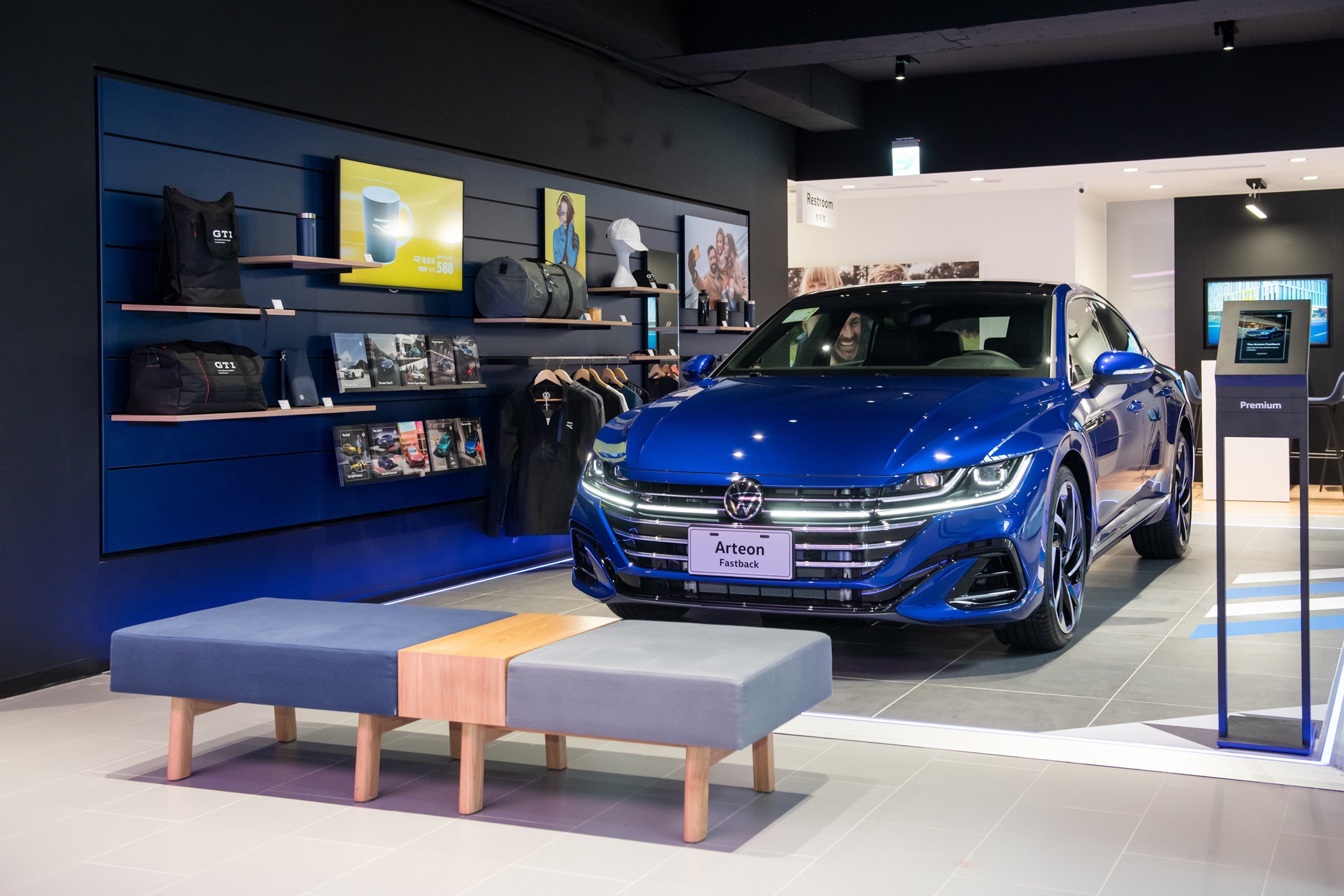 Volkswagen新店展示中心結合挑高的空間規劃,落地帷幕玻璃帶出明亮視野,將寬闊舒適盡收眼底,全新設計的五大車輛展示區,可依照消費者用車需求體驗適合車款,重點產品展示區則有專屬可變色調天幕和LED螢幕播放最新產品資訊,自信飽滿的品牌識別搭配數位化的產品規格立牌,方便消費者詳細完整的閱讀規格配備、車輛相關影片以及最新銷售方案,專業的銷售顧問團隊將透過平板電腦作詳細解說,隨時提供零時差的產品資訊。全新落成的新店展示中心不僅整合數位化賞車體驗,更帶來車主愜意舒適的休憩空間,可輕鬆享用風味小點及美味飲品,獨享Volkswagen 德系氛圍。