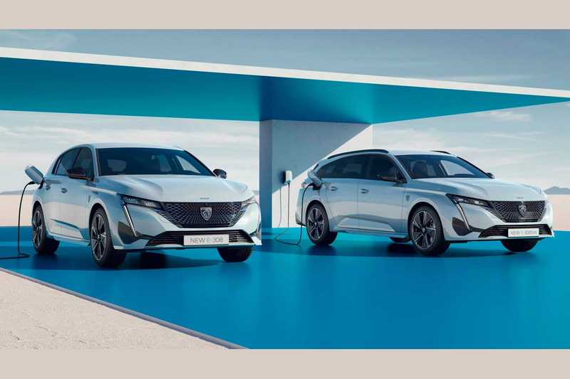 電池部分採用的是新一代技術開發,其成分為80%鎳、10%錳和10%鈷,容量為54 kWh並支援100kW的高壓充電,電量從20%充至80%僅需不到25分鐘,在WLTP的測試標準下滿電狀態的行駛里程可超過400公里,另外駕駛模式中則新增有"Brake"模式,當鬆開電門踏板之際會加強回充力道;馬達部分則提供156匹的馬力輸出,扭力峰值為260 Nm,原廠強調能提供駕駛即時的加速體感但未提供相關的加速數據,E-308及E-308 SW預計將在明年中上市,車型編成有Allure和GT兩種規格。