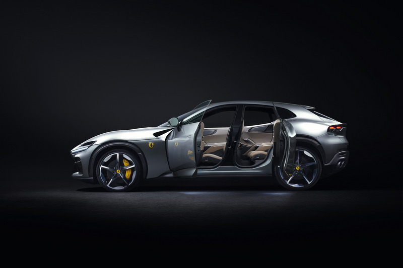 6.5升V12自然進氣引擎,提供725hp最大馬力與73kgm扭力峰值。 除了優異的動力性能,車室配置絕對是Purosangue的最大特色,首先對開式車門設計及4,973mm車長與3,018軸距提供舒適的四人乘坐空間,就已經吸引許多不用看車就先下訂的買家青睞。