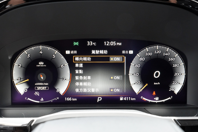 座艙中大量使用皮革與軟質材質搭配出高質感,並全面導入數位化顯示與操作介面。 進入車內,Infiniti大量使用皮革包覆內裝,並幾乎在伸手可及之處,都是使用皮革或軟材質鋪陳,讓人觸摸到的每一個不品都有絕佳觸感;主要操作介面也跟隨數位化潮流集中到12.3吋觸控螢幕,同時也還保留傳統空調介面與中央選鈕搭配快捷鍵,駕駛可選擇最順手的方式操作各項功能,以一款全新車型來說,使用上算是相當好上手:另外QX60也配了12.3吋的數位儀錶與10.8吋的全彩抬頭顯示器,可提供各項完整地車輛資訊,尤其大面積抬頭顯示器對於包括導航系統、ProPILOT 智慧駕駛輔助等基本資訊辨識上更是方便,都是令人讚賞的配備。