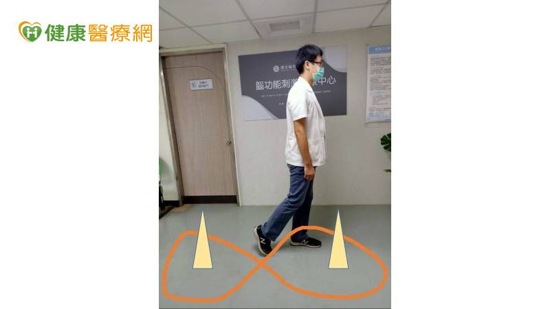 六、平衡運動,繞8字型走路,在兩個相距一公尺的障礙物間,繞8字型走路。每次運動繞5趟,以平穩的步伐前進,如有頭暈請先休息。