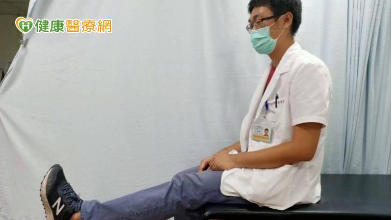 二、肌力訓練:在坐姿下踢腿練習,將膝蓋踢直。踢直後維持姿勢10秒鐘,然後緩慢放下,隨著能力提升,可以在腳踝處綁沙包,增加難度。每回合20下。