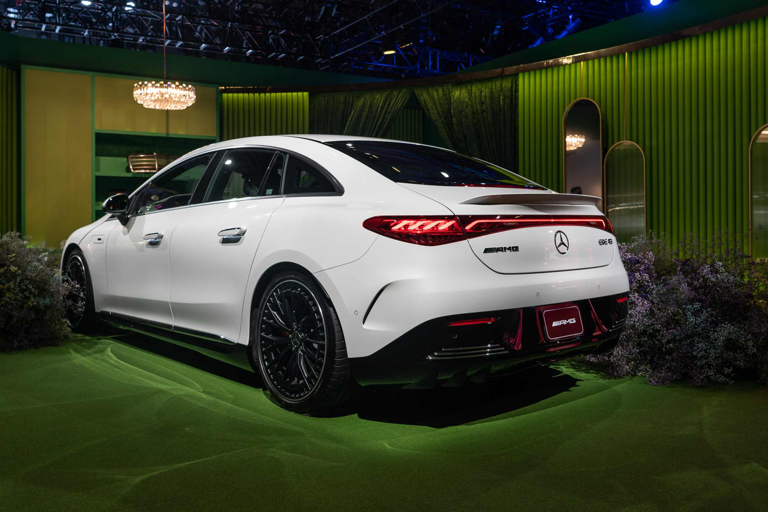 EQE 43 4MATIC 車頭「Black Panel」換上 AMG 專屬的直瀑式造型,同時裝上極具張力的 AMG 空力套件,並針對車頭加大的進氣壩及車尾的下擾流板與尾翼。EQE 43 4MATIC 換上 90.56 kWh 的電池,搭載前後雙電動馬達所構成的 AMG Performance 4MATIC,就能創造最大扭力 858 Nm,零百加速僅需 4.2 秒。不僅如此,更多的車輛設定,也可以透過Hyperscreen 超寬幅螢幕進行操作,如 AMG RIDE CONTROL+ 進階式跑車化懸吊或者具多重支撐充氣調整雙前座。