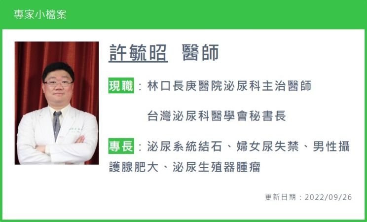 排尿出問題,不少男性易自行腦補,認為是攝護腺肥大造成夜尿問題!台灣泌尿科醫學會秘書長、林口長庚醫院泌尿科主治醫師許毓昭醫師受訪時表示,夜尿雖是攝護腺肥大七大症狀之一,但即使接受攝護腺手術,夜尿也不一定會改善,而可能是腦部賀爾蒙異常。此外,台灣人口高齡化之際,下泌尿道問題也隨年齡增加而提高發病率,夜尿就是其中一種老化好發的疾病,卻常被患者當成老化正常現象而不常求診。