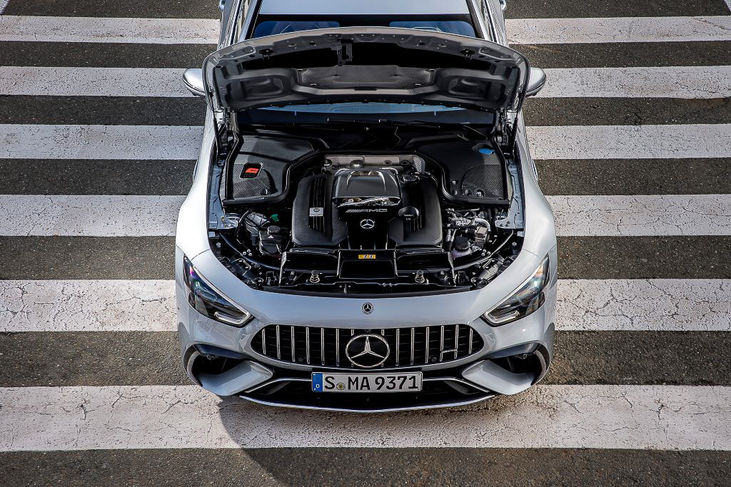 Mercedes-AMG GT 63 S E PERFORMANCE 搭載 Formula 1™ 加持的油電混合動力系統,前軸為一具「One Man, One Engine」4.0 升 V8 雙渦輪引擎,後軸則配置輸出最高可達150 kW (204 hp) 的電動馬達,並採用專屬動力配置和 AMG 總部研發的高性能電池 (HPB),搭配 AMG Performance 4MATIC+ 主動式四輪驅動系統,綜效馬力最高可達 843hp,扭力峰值來到 1,470 Nm,0-100 km/h 僅需 2.9 秒。GT 63 S E PERFORMANCE 不只是 AMG 迄今為止動力最強大的市售量產跑車,更展現 AMG 將性能豪華DNA 帶向電動未來的決心。