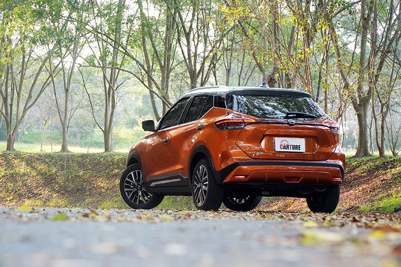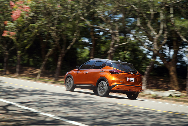 動力系統升級後,明顯改善的就是起步加速與再加速的瞬間力道更為充足,不過因搭配CVT變速系統,加速初段雖然輕快,但還是有變速箱齒比變換跟不上引擎轉速的情況,引擎已經拉高轉速發力,變速系統無法及時地傳輸至輪上,動力輸出的持續性受限於變速系統特性,對動力表現要求較高的朋友,可能會覺得少了些勁道。操控上,Kicks依然是簡單好上手的一輛車,開起來沒什麼負擔,底盤設定部分,路感頗為明確,可以清晰地感受到路面的狀況,避震設定不算硬朗,過彎時的側傾不算小,但仍維持該有的支撐性,不至於瞬間軟腳,只是面對快速連續過彎、重心快速左右轉移時,懸吊轉移的反應不算快,在山路上奔馳,得適度地控制速度。畢竟它不是一款強調熱血操控的車款,簡單代步才是它的強項。