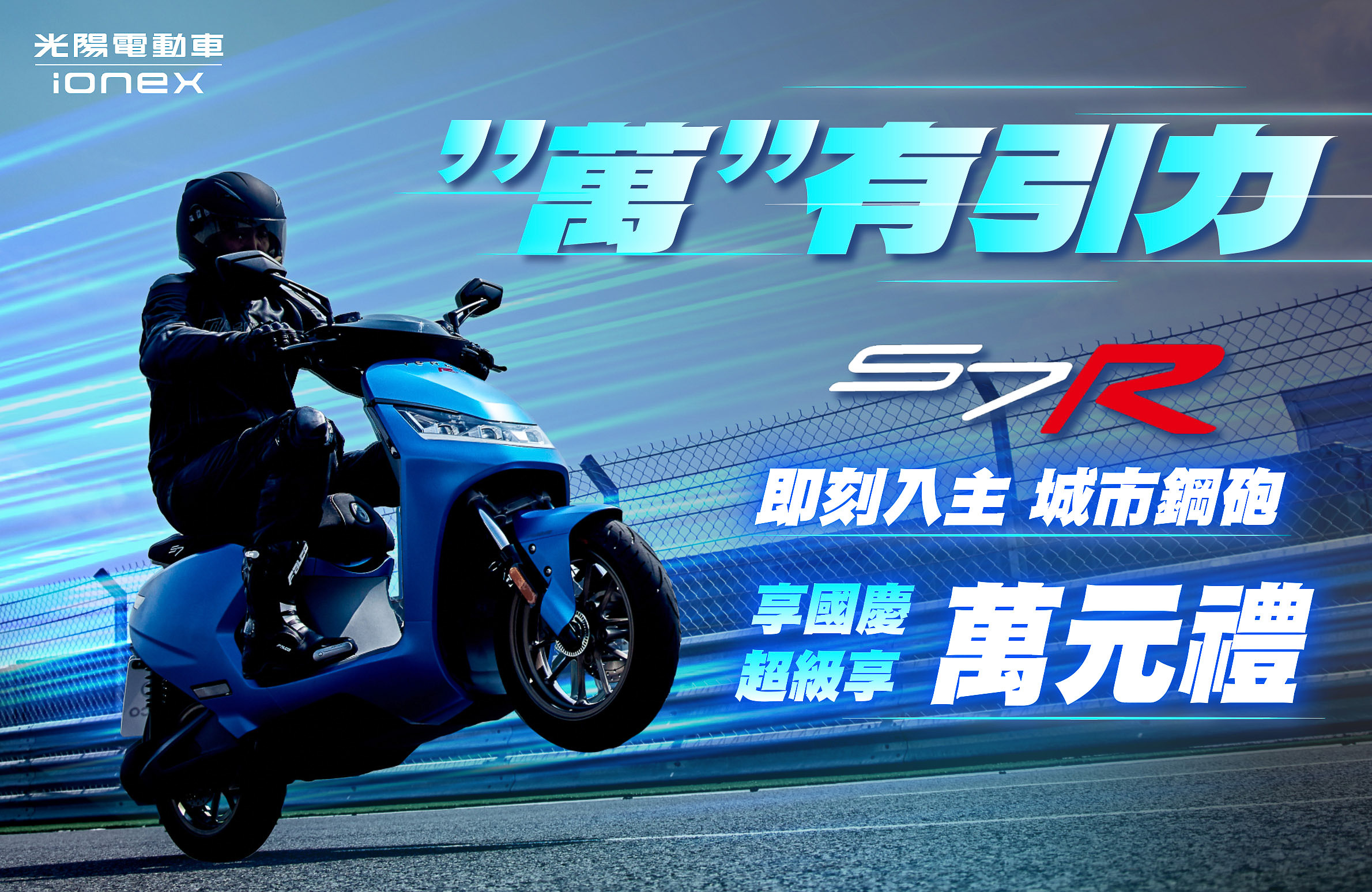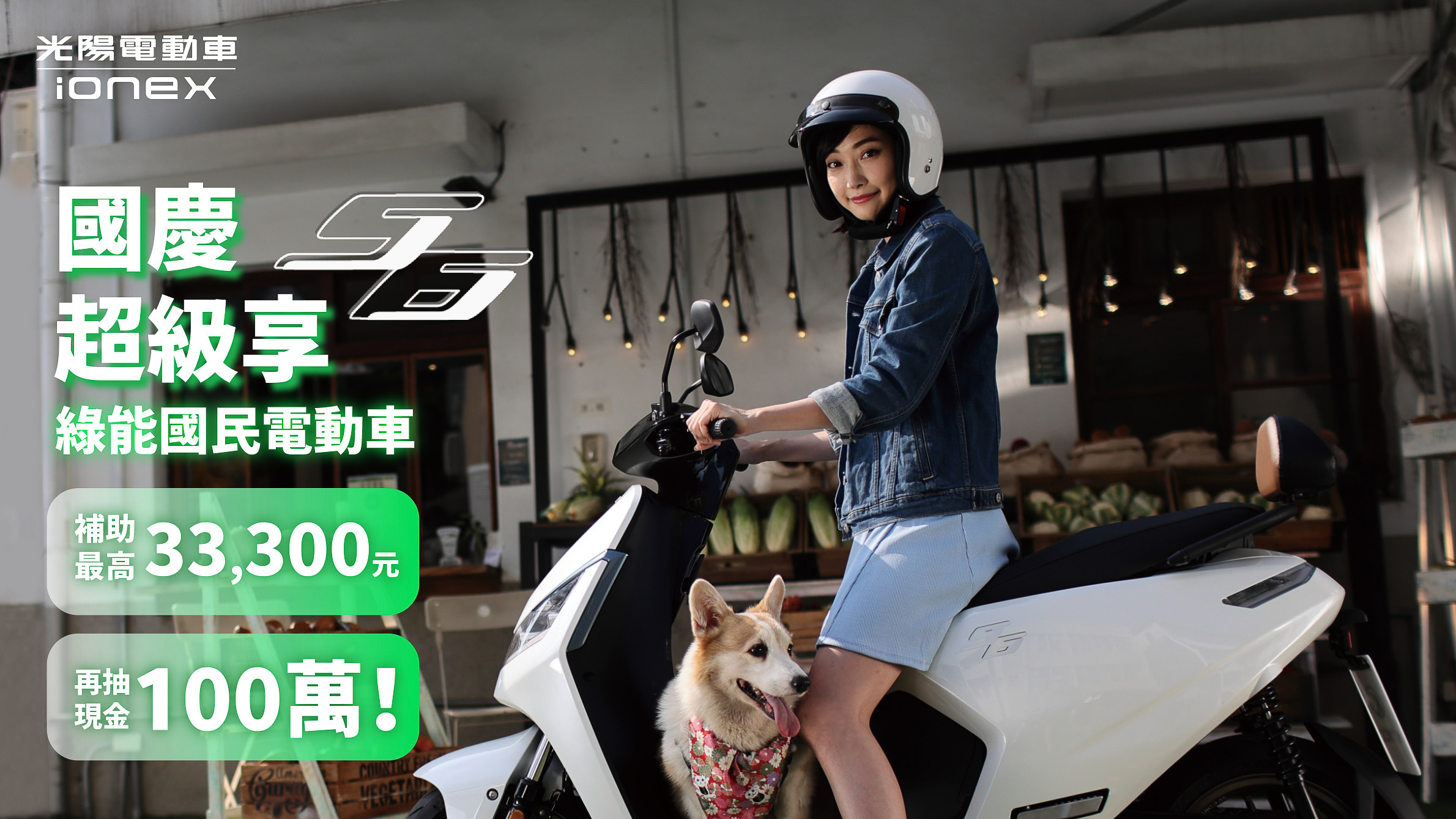 為慶祝銷售亞軍與迎接雙十國慶月,Ionex光陽電動車推出當月快閃雙優惠,現在買Ionex綠能國民車S6即享「國慶超級享補助 33,300元」,城市鋼砲Ionex S7R亦可享「萬有引力萬元好禮」!